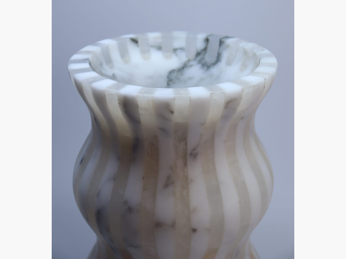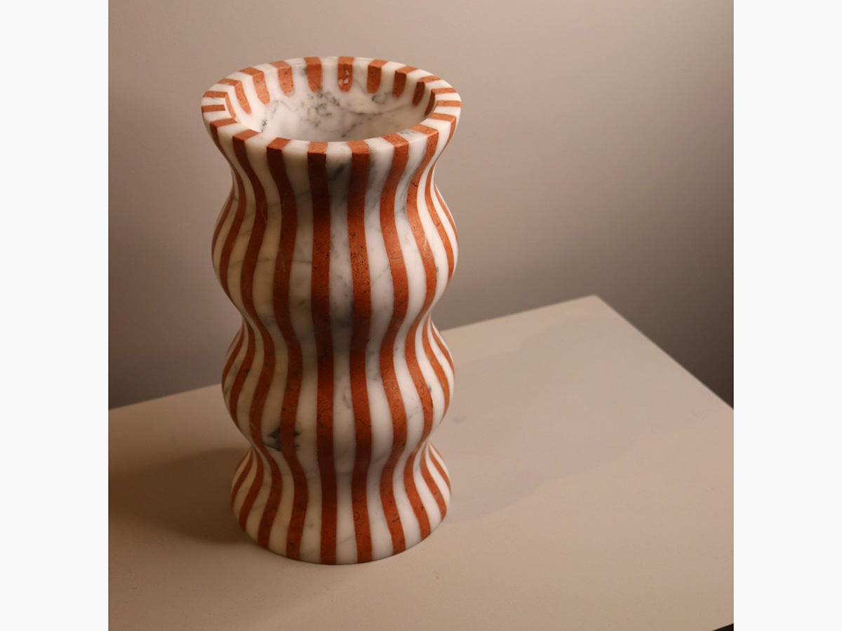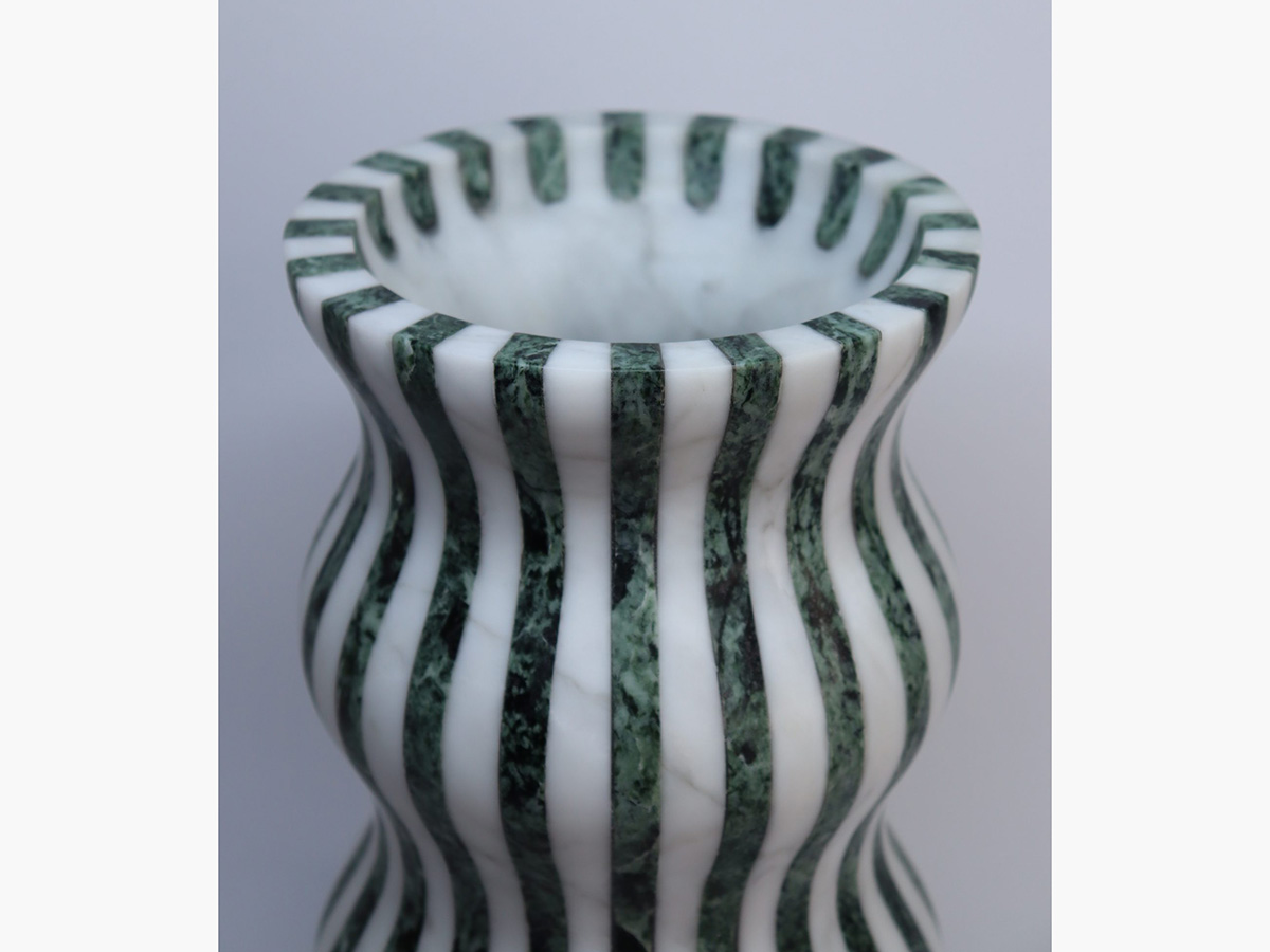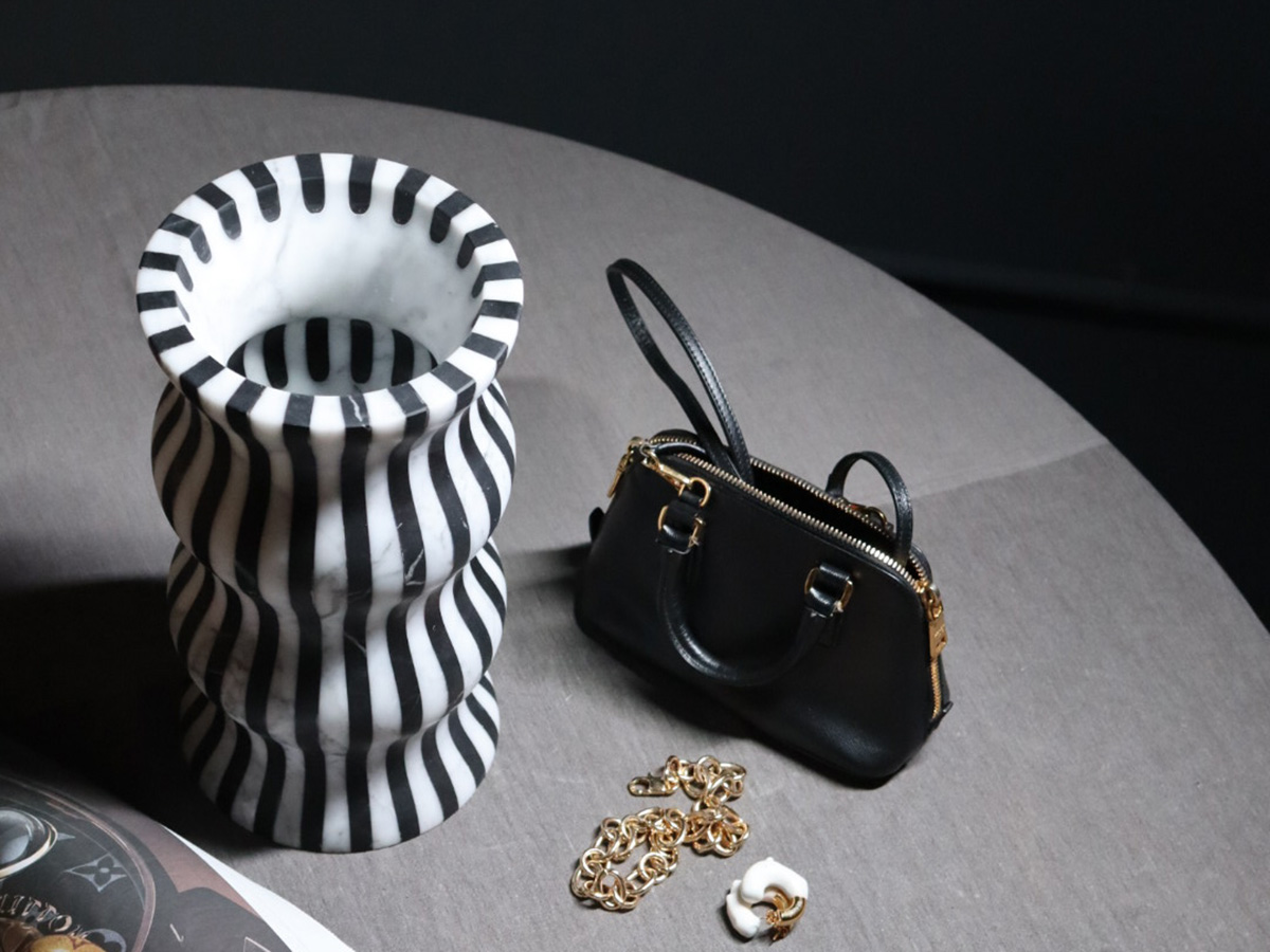 Editions Milano’s masterful ability to shape stone finds a more than worthy demonstration here. Versilia is a vase with soft and elegant shapes, modeled from marble and joined to create a form that is pleasing not only to the eye but also to the touch. In a succession of waves and chiaroscuro, Versilia conforms to the surrounding space, becoming an integral part of the furniture and its highest expression. The structure of Versilia is made of black Marquinia and Arabesco marble, two colors in antithesis to each other that when combined create a one-of-a-kind effect.