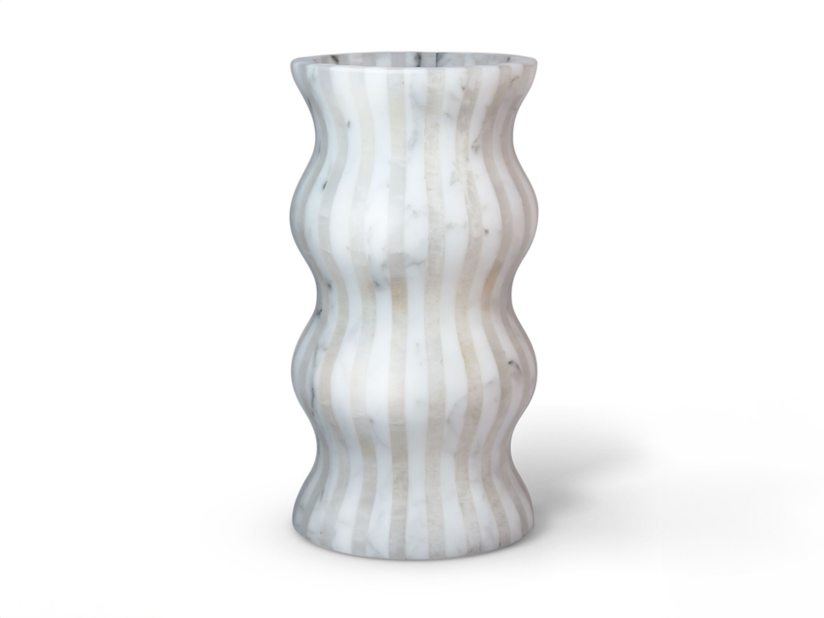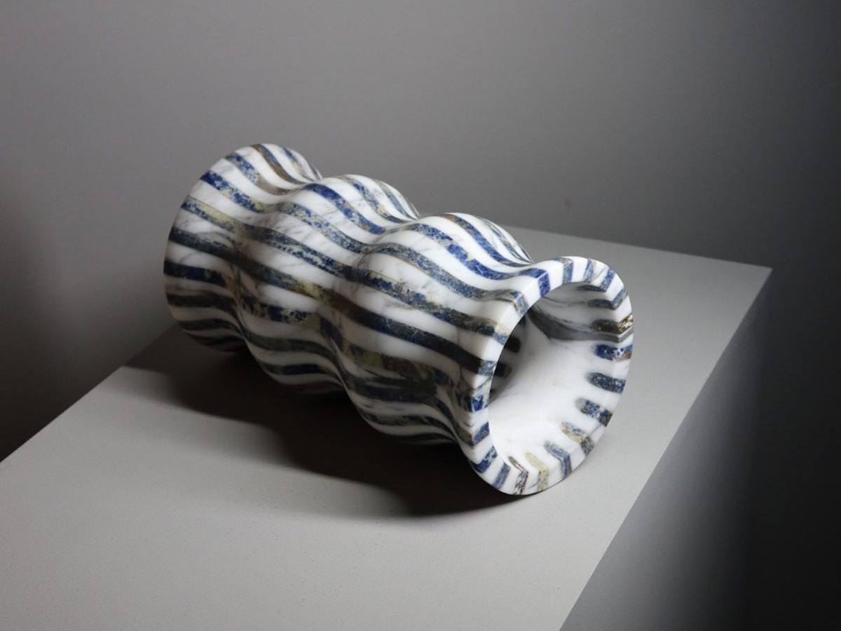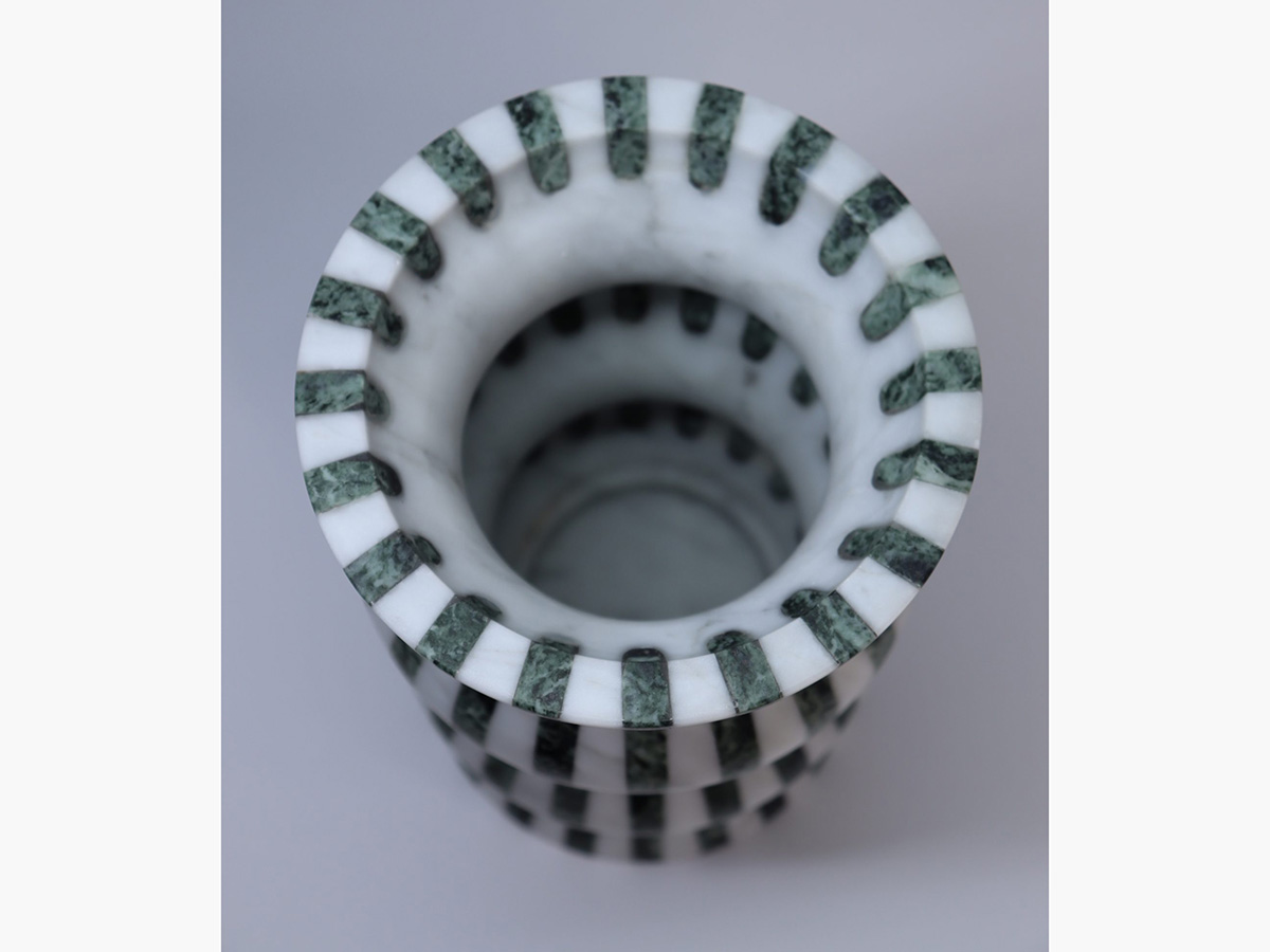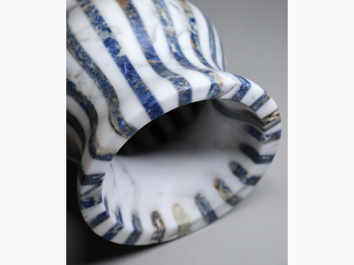 Editions Milano’s masterful ability to shape stone finds a more than worthy demonstration here. Versilia is a vase with soft and elegant shapes, modeled from marble and joined to create a form that is pleasing not only to the eye but also to the touch. In a succession of waves and chiaroscuro, Versilia conforms to the surrounding space, becoming an integral part of the furniture and its highest expression. The structure of Versilia is made of black Marquinia and Arabesco marble, two colors in antithesis to each other that when combined create a one-of-a-kind effect.