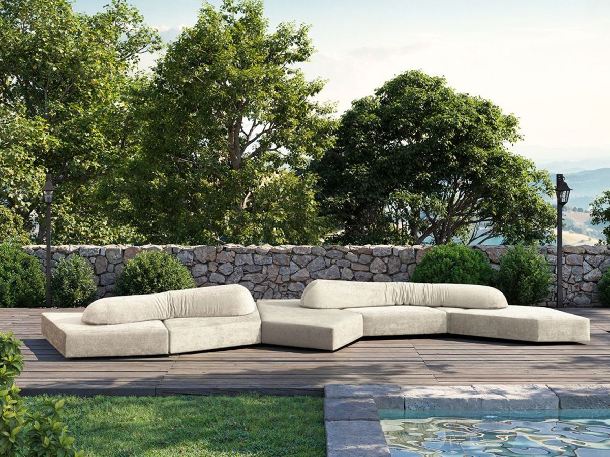 The On The Rocks outdoor sofa by Edra is a padded piece that stands out for its modular elements and innovative style, conceived to offer comfort and compositional freedom in outdoor spaces. Designed by Francesco Binfaré, it is made up of asymmetric geometric modules that can be combined and customized as desired, allowing you to create fluid and personalized configurations. The cushions completely replace the backrests and armrests, creating an irregularly shaped support element for the body. On The Rocks is made with materials resistant to atmospheric agents and features a sculptural profile already present in its indoor version, further accentuated here. Ideal for creating an outdoor space of excellence.