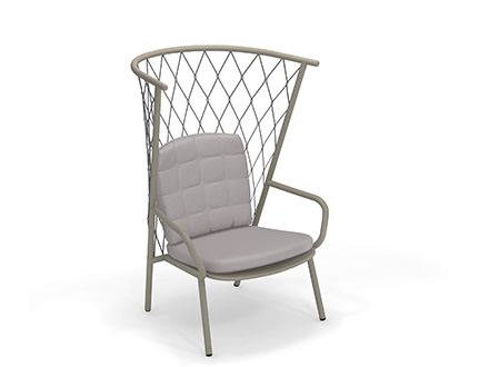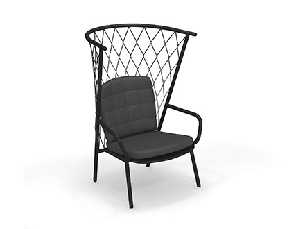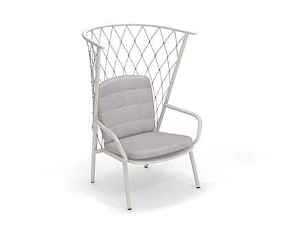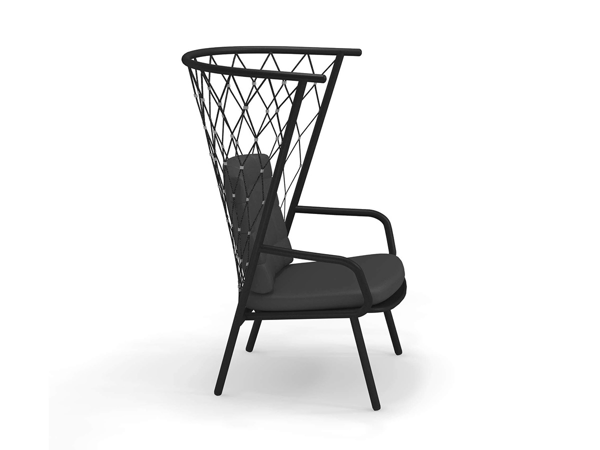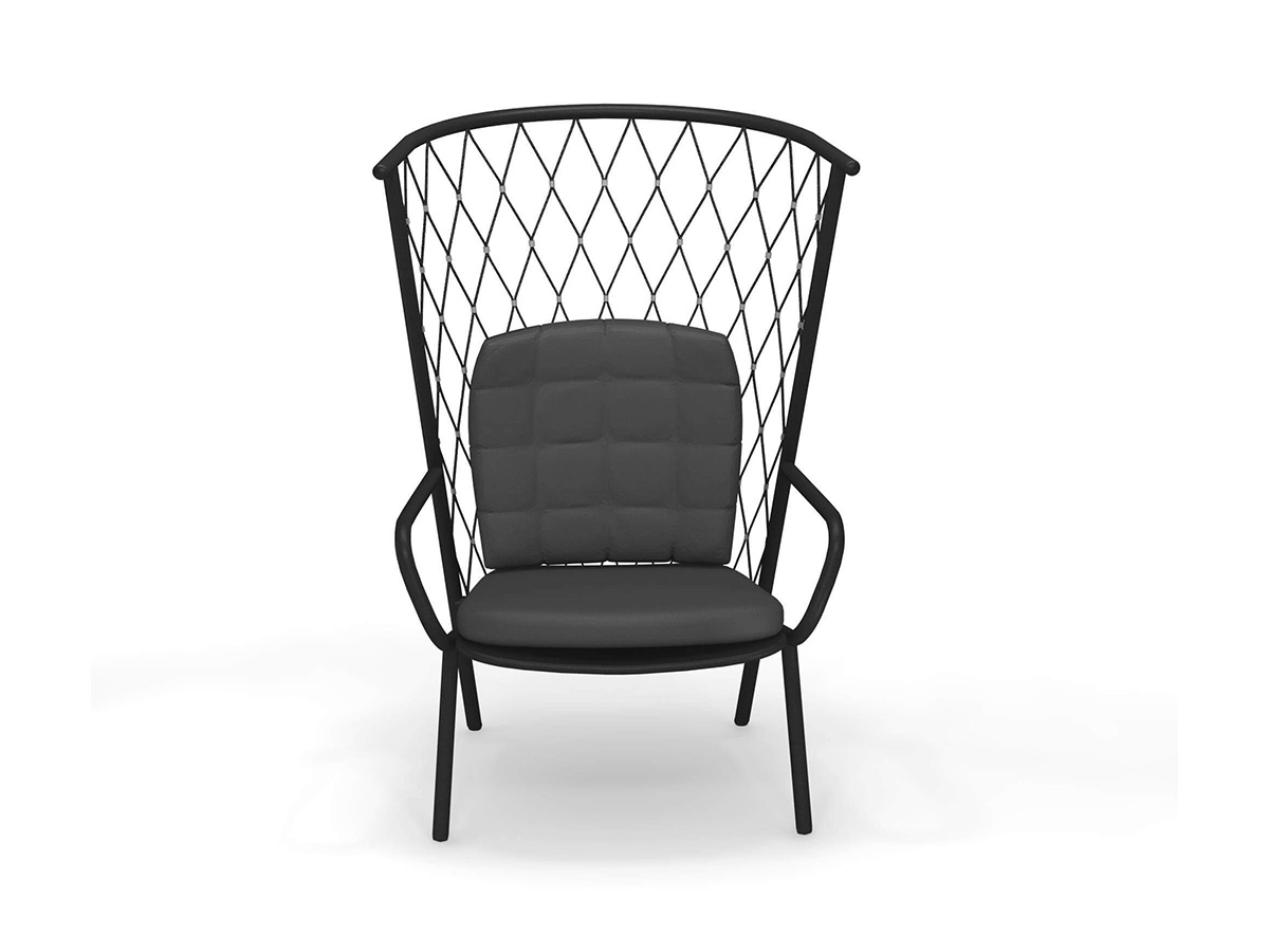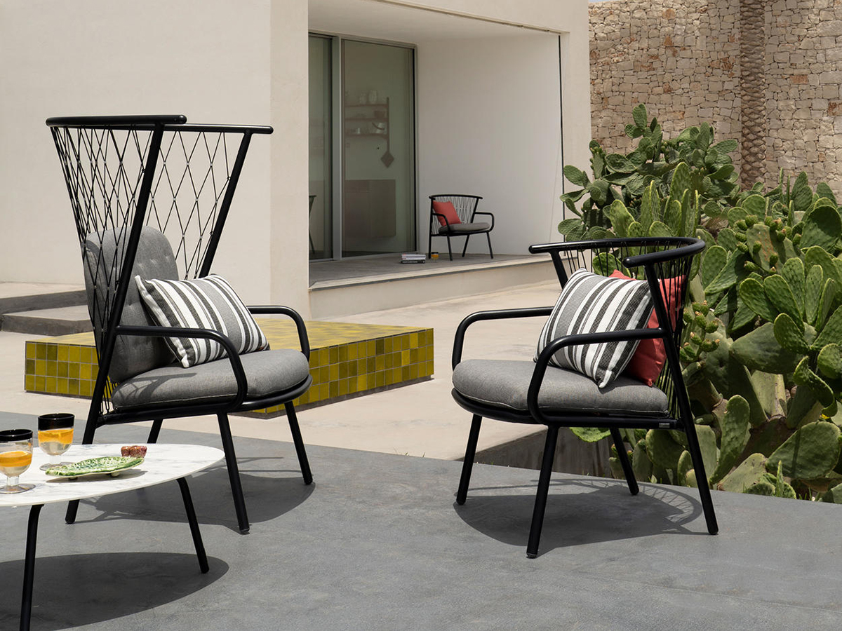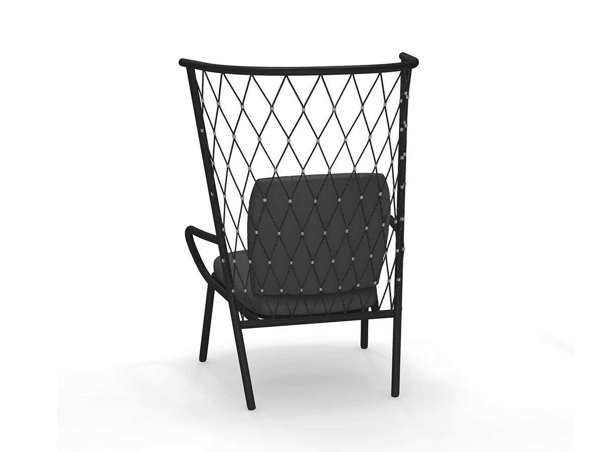 The Nef outdoor armchair, designed by the designer Patrick Norguet and produced by the well-known brand Emu, is characterized by a high enveloping backrest with polyester rope weaving and stainless steel details. The structure is in completely recyclable aluminum tubing, available in three colours, while the backrest and seat cushion is in polypropylene certified for outdoor use. Thanks to the eclectic style and rigorous lines, the Nef armchair is very versatile and lends itself easily to enhancing corners of the garden or to creating comfortable conversation areas on the veranda or terrace. It can be used alone or in combination with the other chairs in the Nef collection for a more harmonious project.