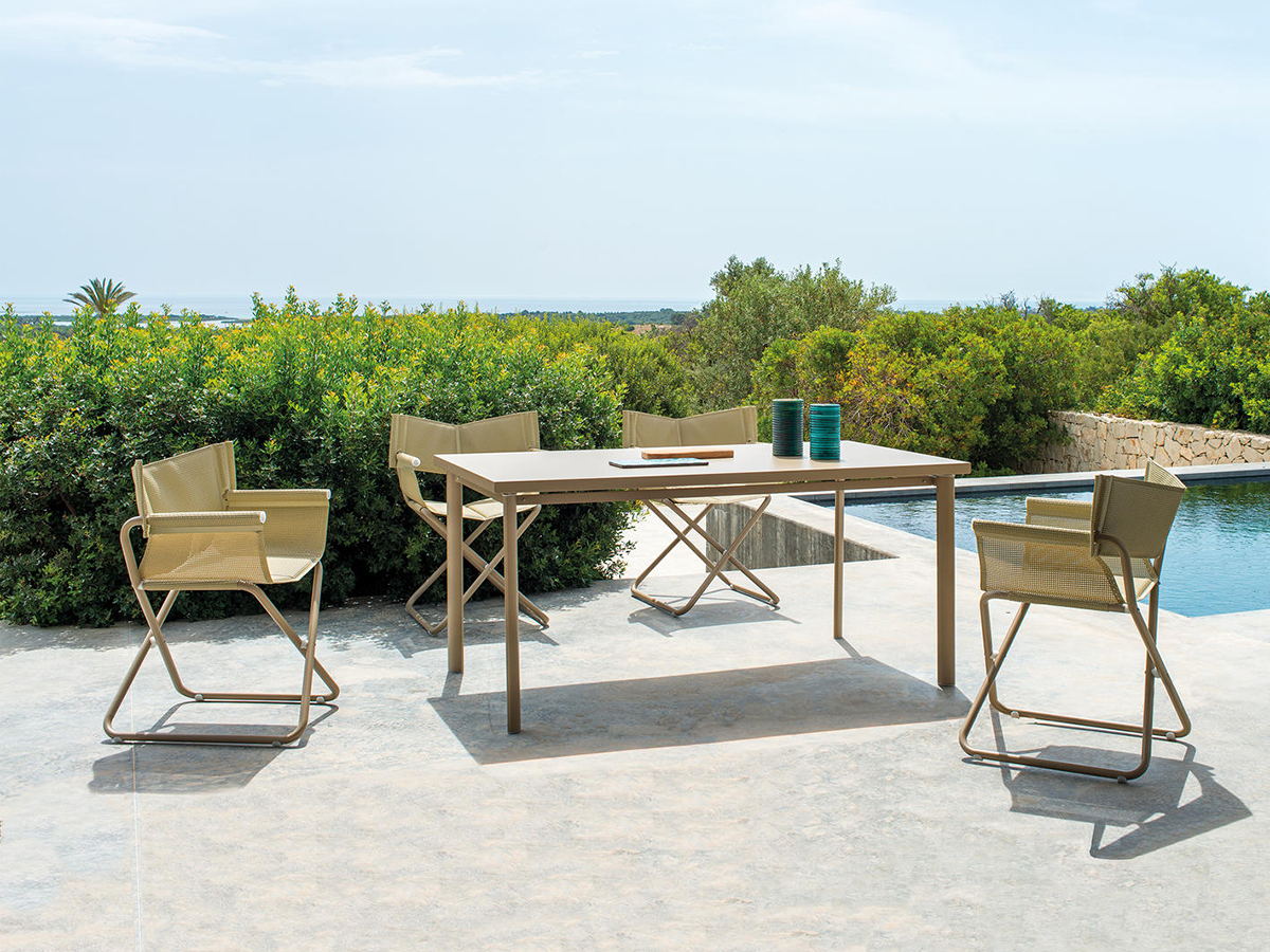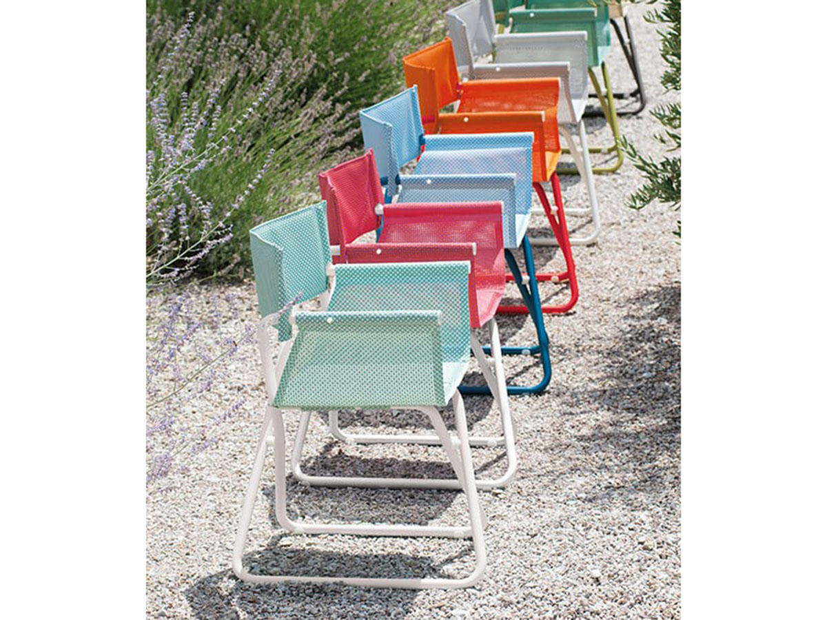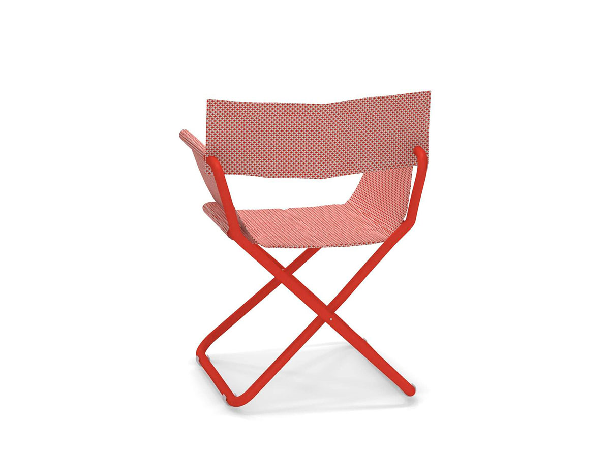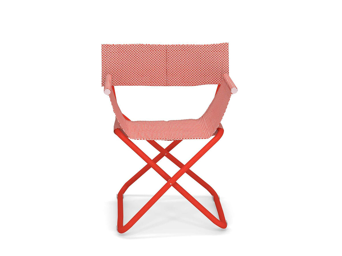 The Snooze outdoor seating collection by Emu, designed by Chiaramonte and Marin, includes a folding armchair that recalls the shape of the classic director's chair. The structure is in painted tubular steel, available in different colours, while the seat and back are made with an exclusive and patented Emu-Tex technical fabric for outdoor use, with high resistance to wear and atmospheric agents. The ease of folding and handling make Snooze suitable for informal use in both residential and contract settings, mainly as a seat for the dining table or as a small armchair to be used by the pool or on the veranda.