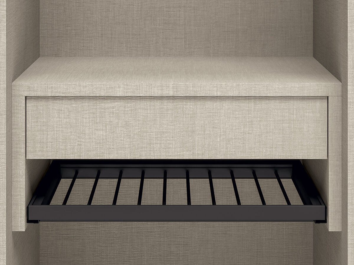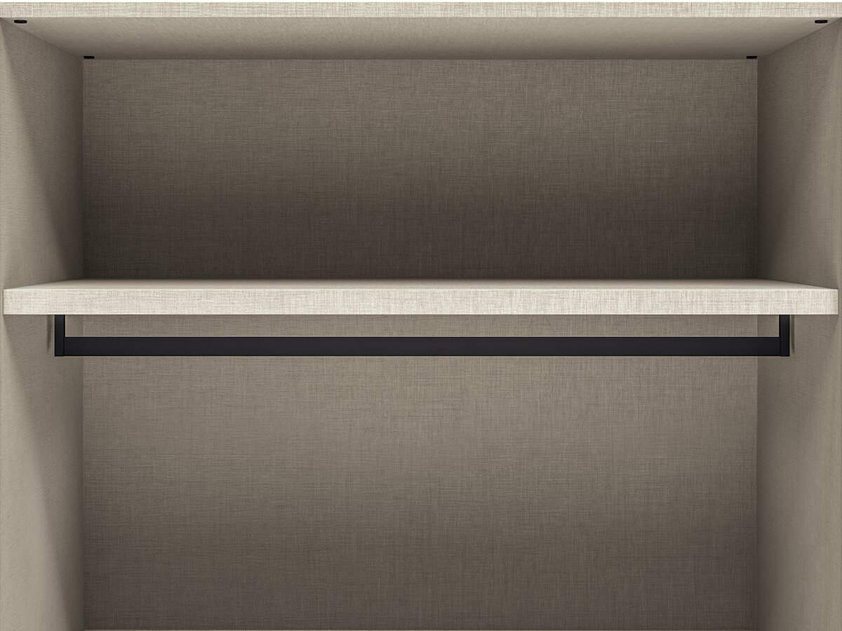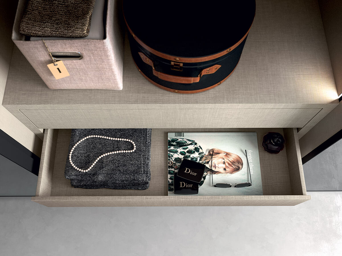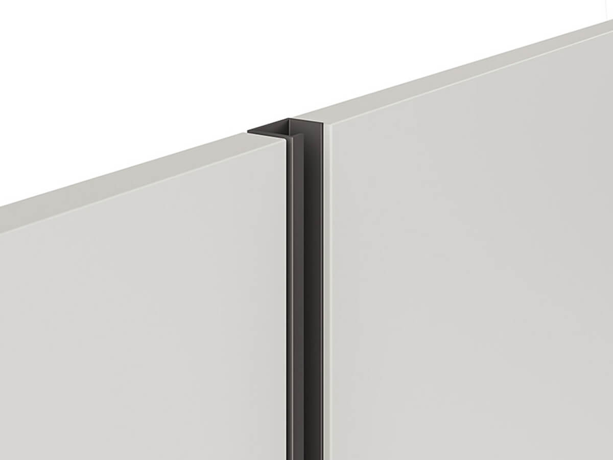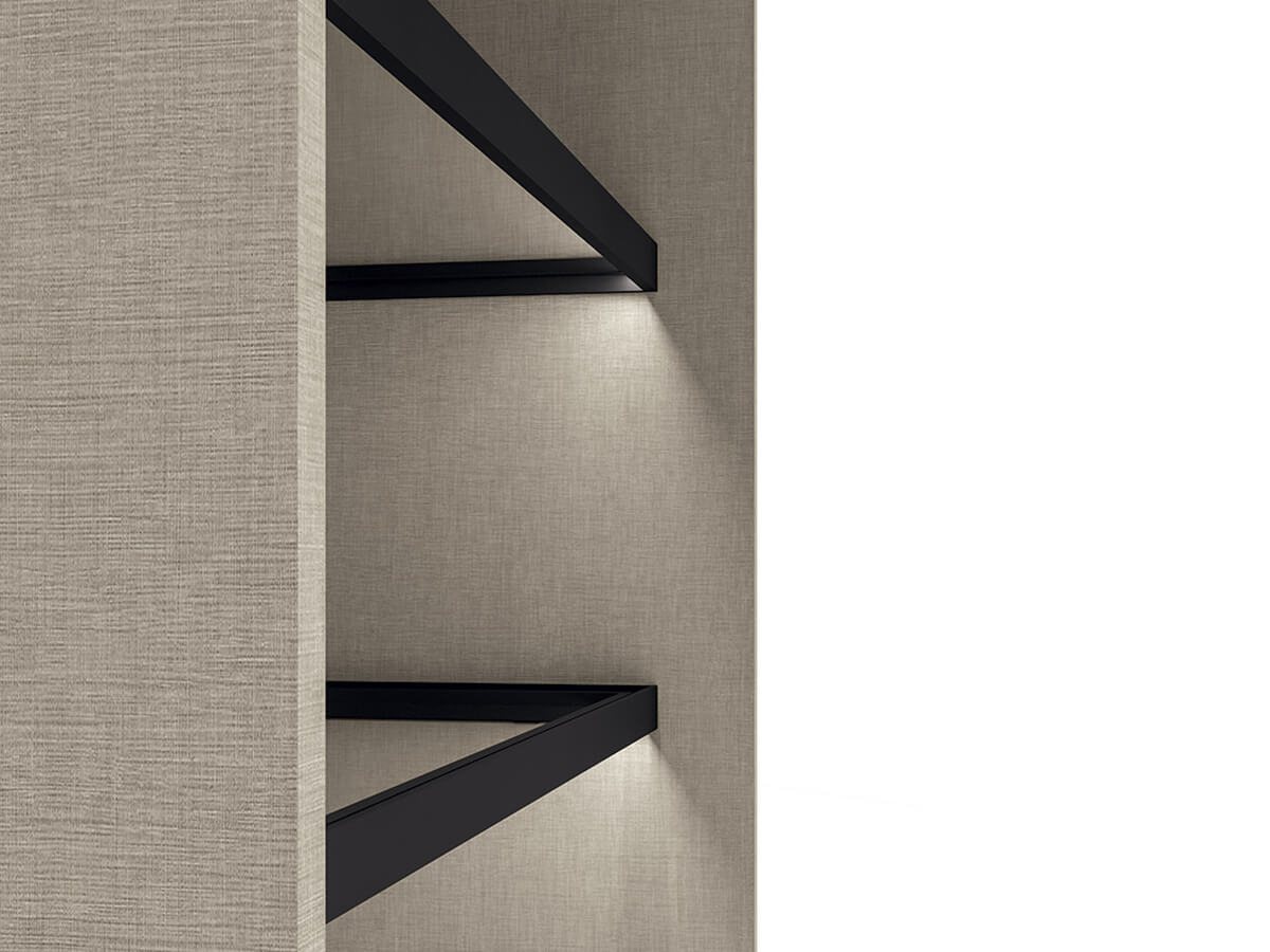 The Geo sliding wardrobe by Erba Mobili stands out for its marked design flexibility and the unlimited possibilities of customization guaranteed by an unrestricted management even of compositions outside the standard sizes. Geo is therefore a real custom-made sliding wardrobe, in which both external sides and doors can take on an always different appearance depending on the designer's wishes thanks to the application of mirrors, glass, fabrics or wallpapers, which are to add to the more than 25 finishes of the melamine faced panels from the Erba Mobili sample collection. The handle, which runs vertically along the entire height of the door, can be made up of a thin protruding metal sheet or a recessed groove.