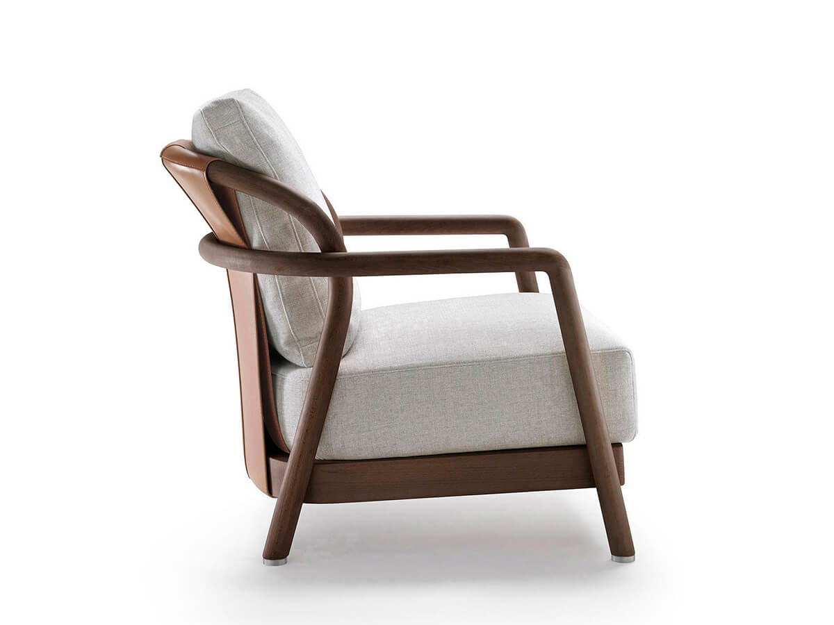 Alison represents one of the many tributes that Flexform has dedicated to the tradition of Scandinavian design, reinterpreted in a contemporary key. The solid wood structure supports the padded seat, which is in turn fastened to the leather backrest which offers not only a support resistant to use, but an element of comfort. The intertwining of wood, leather and fabrics creates a curious game of roles, each declinable in numerous colors and aesthetic choices so as to create a customized and unique piece of furniture. Thanks to its compact proportions and its allure beyond time and fashions, the Alison armchair is perfectly at ease in any room of the house, showing off a timeless beauty full of emotion.* Technical features: metal feet available in satin, chrome, black chrome, burnished or champagne finish