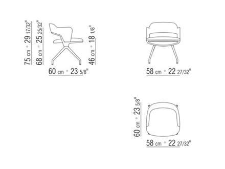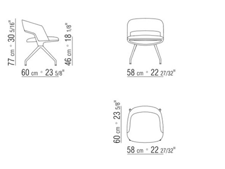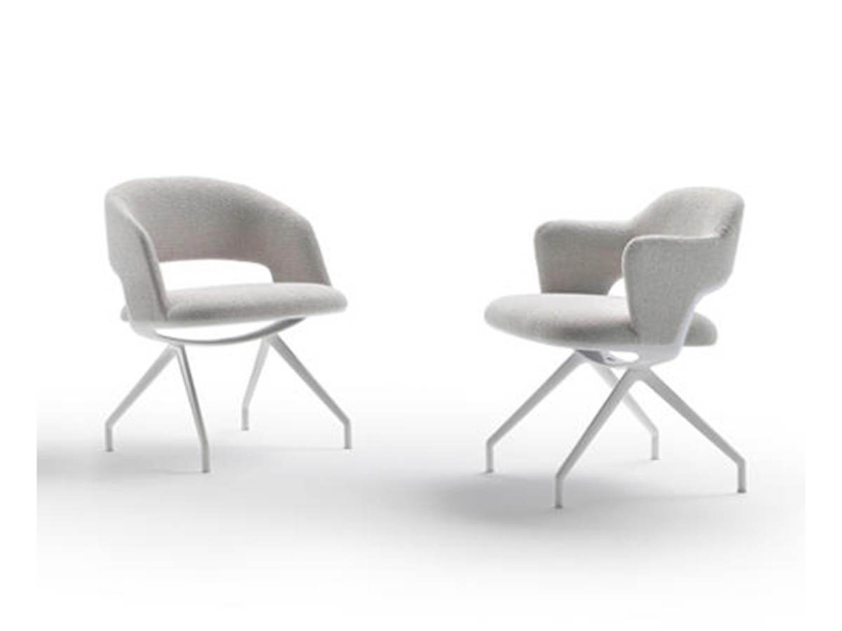 A chair with extreme personality that features balanced proportions and enveloping lines aimed at suggesting a feeling of comfort and extreme elegance. Alma base includes numerous options including fixed and swivel, with wooden and metal legs and as many color options in different fabric or leather finishes. The variety of choice was created by Flexform to favor the placement of Alma in numerous living contexts, from the most to the less formal, and certainly also in contract areas. The beauty of Alma's aesthetic is evident as always in the enveloping and generous backrest, padded to accommodate the body and support it in the seat.