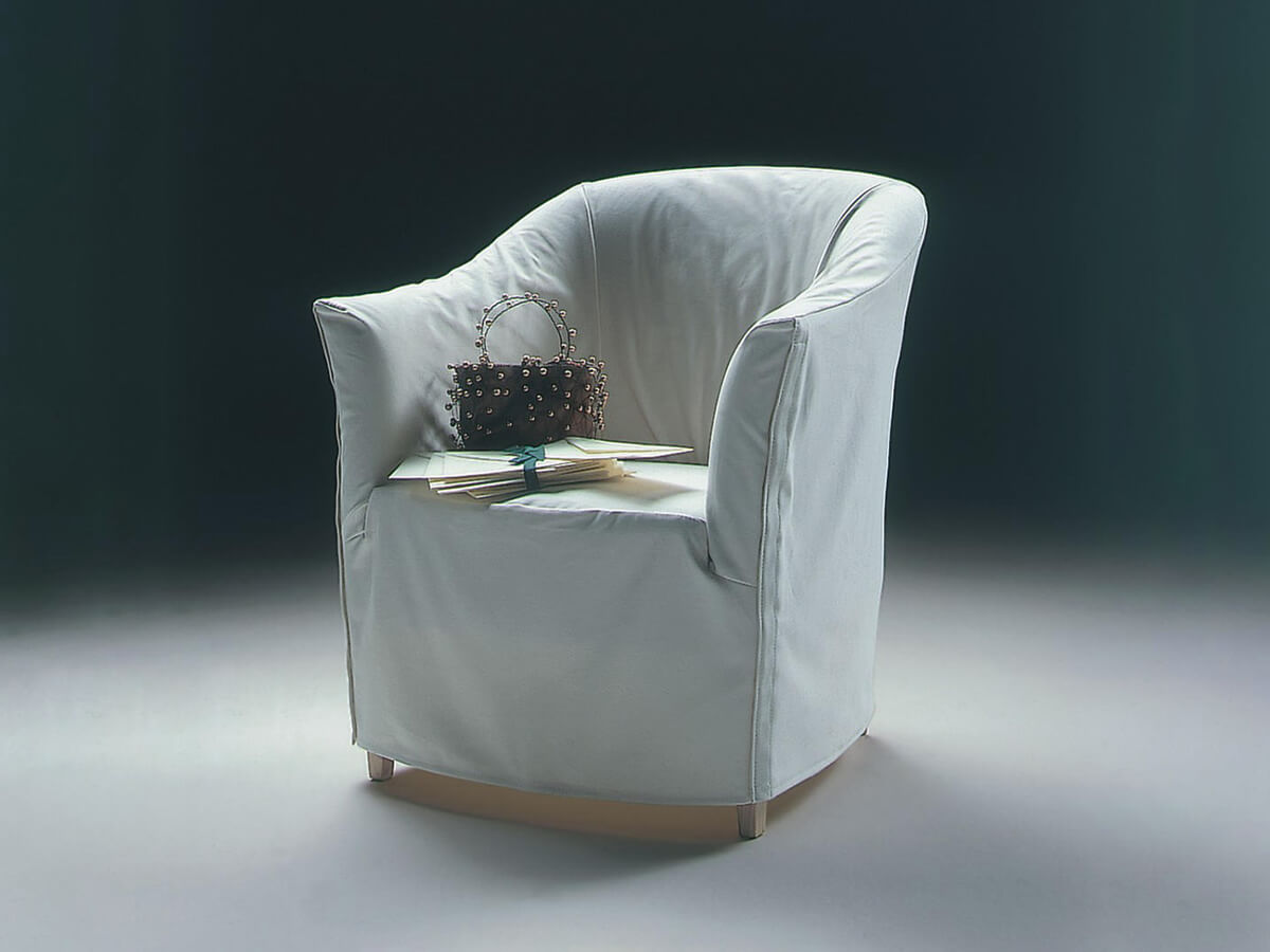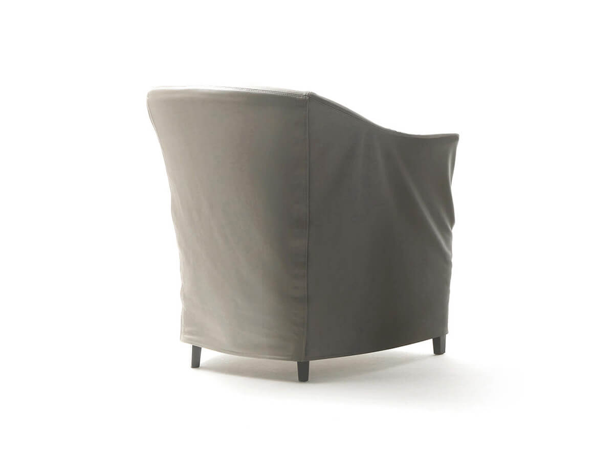 Doralice is an armchair with an elegant and sophisticated design, capable of giving any environment a touch of personality and distinctive quality. The measured proportions combined with the exquisitely retro lines raise it to a model of a contemporary design where the craftsmanship of Flexform is strongly evident. The wooden and metal structure is padded with polyurethane foam, subsequently covered with a protective fabric lining. The covering consists of a simple housse, ideal for making Doralice easily removable. The backrest cushion is optional, possibly placed if you want to improve the comfort of the seat. Ideal for any living environment, Doralice fits perfectly also in sleeping spaces and more, depending on the need.