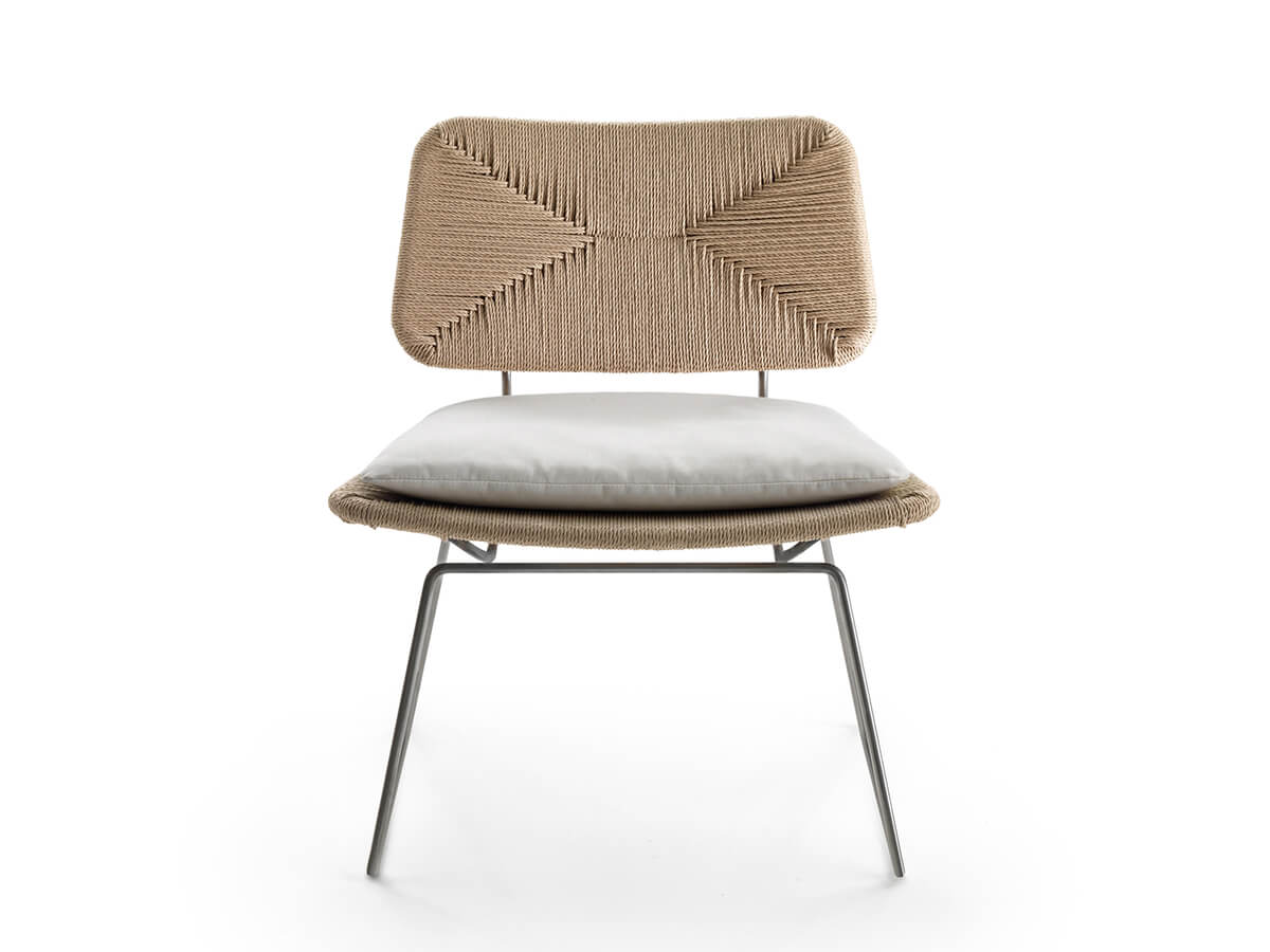 The innate elegance and expressive rigor of designer Christophe Pillet give life to the armchair Echoes produced by Flexform. The structure is in metal in different finishes and colors while the seat is in paper cord or hand-woven straw with exquisite craftsmanship that refers to different eras and cultures. The metal armrests have an insert in canaletto walnut or in ash available in different finishes. To further improve the comfort of the chair, you can choose to have an optional removable cushion in both fabric and leather versions.