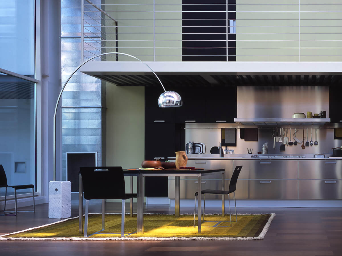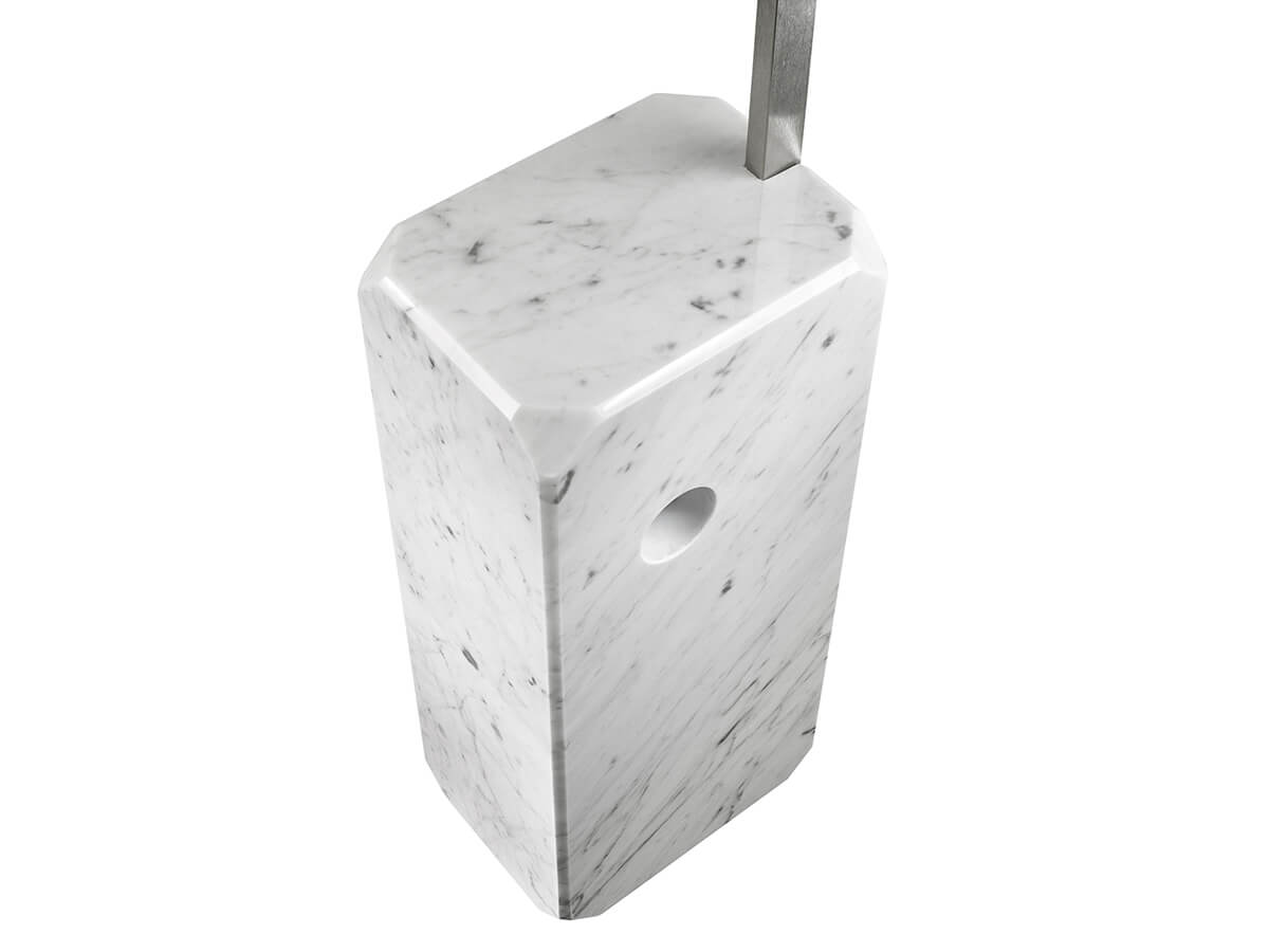 Arco represents one of the most iconic and famous works of Flos, the cornerstone of a timeless style of furniture and destined to overcome passing fashions. From a base in white Carrara marble, a telescopic stem in brushed stainless steel is raised, which in turn is anchored to an adjustable and swiveling reflector. The beauty of this small luminous dome consists precisely in the balance it establishes with the marble on the ground, two opposing weights on which the play of shapes and elegance is based. Available in different sizes and heights, Arco finds its place in many rooms of the house, standing out as an example of high-end design.