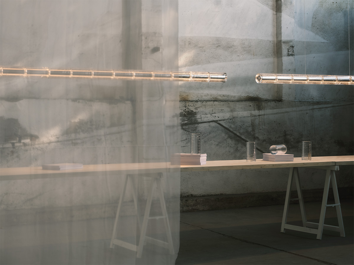 A furnishing element that seems to be inspired by a retro taste, strong in simple but well-organised lines. Luce Orizzontale is made up of interconnected modules in transparent glass obtained by pouring the glass into a rotating mold to obtain an exclusive finish that makes every single piece produced unique. The internal structure in polished extruded aluminum is equipped with two linear LED modules that emit light directly and indirectly downwards. The simplicity of this pendant lamp makes it extremely versatile and adaptable to numerous furnishing needs within any space of the house. However, the placement within formal and public spaces such as receptions, studies, waiting rooms and much more is also interesting.