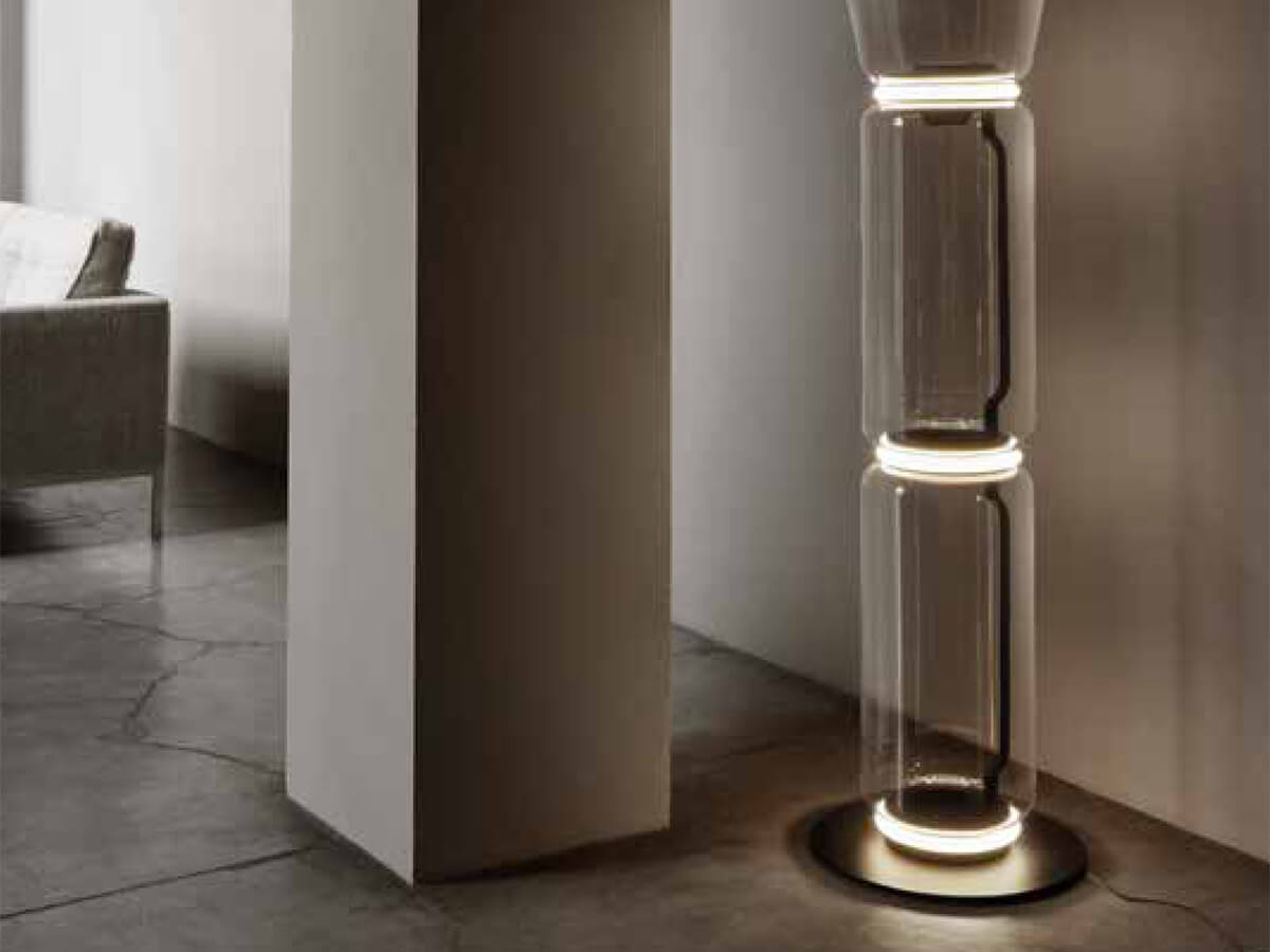 The Noctambule Floor lamp is characterized by originality and craftsmanship. The central body is made up of glass modules connected to each other so as to reach the desired height according to taste and aesthetic needs. The body obtained here is reminiscent of a superimposition of glass jars elegantly illuminated from the inside so as to diffuse a soft light shade into the surrounding space. The intensity is adjusted through a dimmer applied on the power cable. In the numerous heights available, Flos provides for the use of one, two or three modules. Ideal for any room and style of the house.