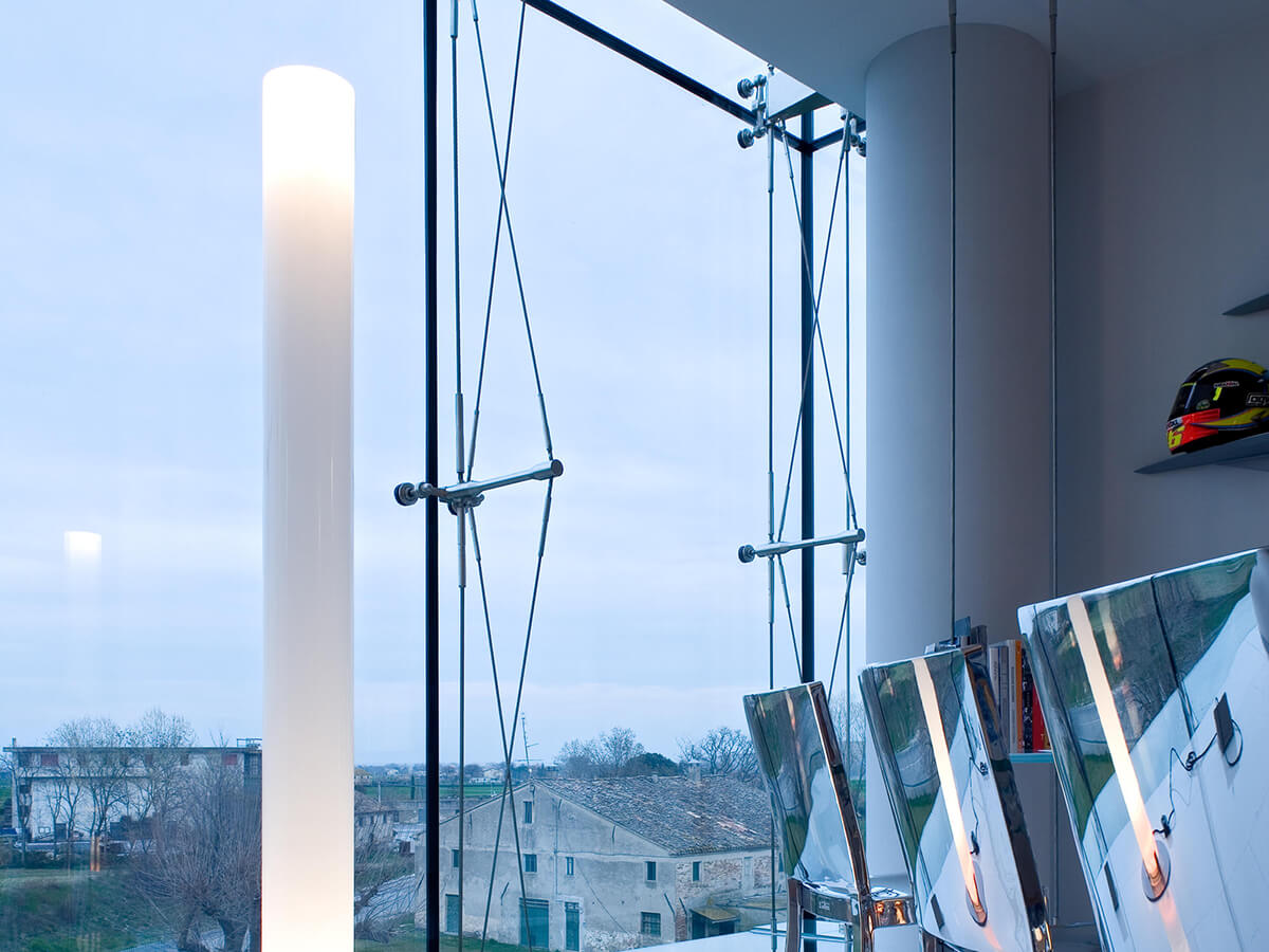Stylos is a floor lamp with indirect and diffused light, consisting of a single cylinder from which the luminescence spreads constant and uniform. It is a work that is as simple as it is elegant, capable with its stage presence alone to act as both a luminous element and a real piece of furniture. The painted steel base supports the solid diffuser where two light sources are placed at the ends which can be controlled with a double switch. The simplicity of Stylos makes it an extremely versatile piece of furniture, which can be used in different environments regardless of style and taste.