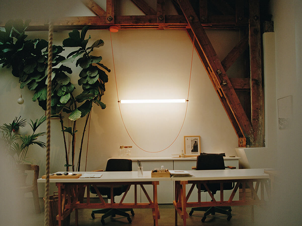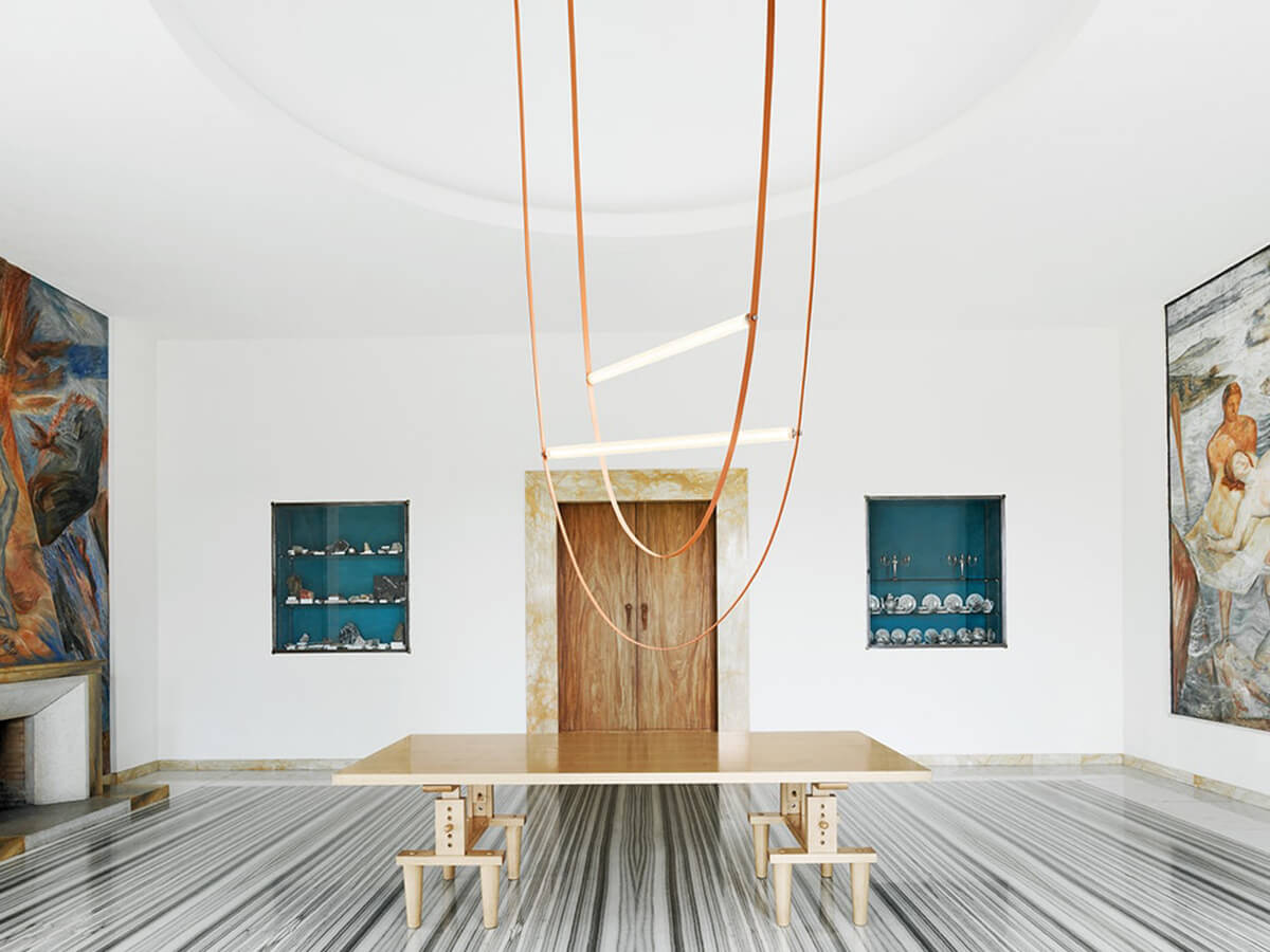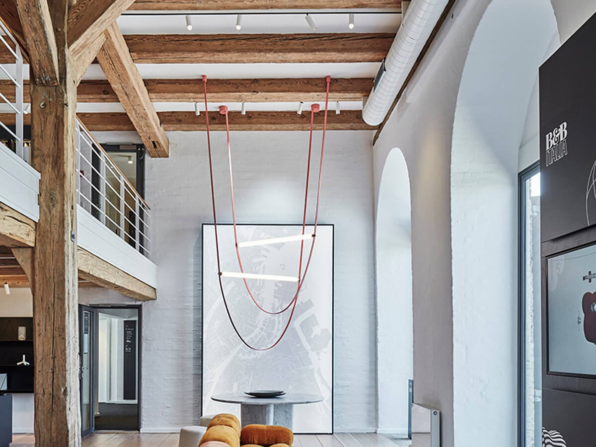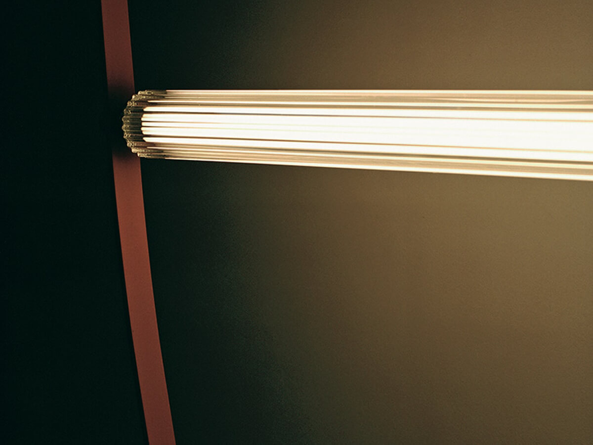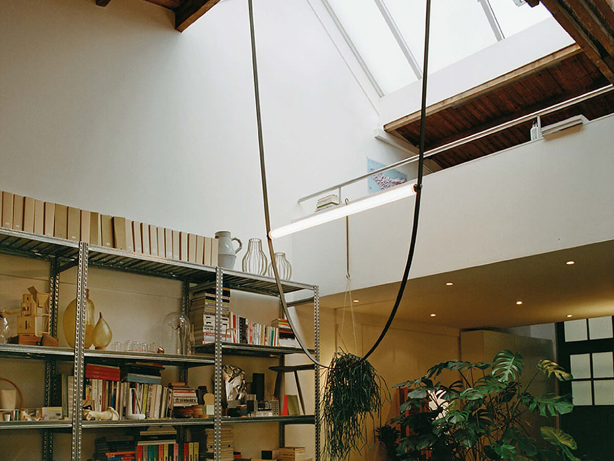 The Formafantasma studio designs the Wireline suspension lamp for Flos, which blends industrial style with artistic and playful expression. The reflection on the electric cable constitutes the soul of the project not only from a functional but also a formal point of view. The pink rubber strap o forest green, combined with the rosettes with the same finishes, creates the shape of the lamp and supports it a borosilicate glass rod that contains the LED light source. Ideal close to a wall but even in the center of the room, in a domestic or contract environment, Wireline integrates easily into contemporary contexts but also period thanks to its singular shape and neutral colors but at the same time trendy.