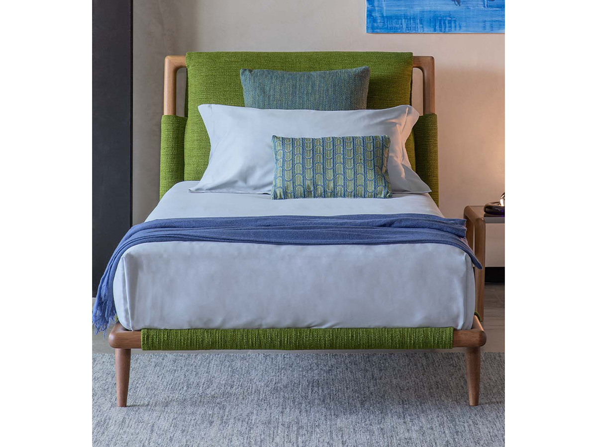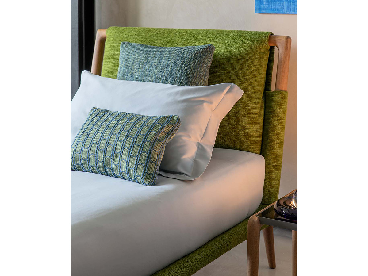 Matteo Nunziati's design makes this bed out of the ordinary, extremely elegant and homage to the nobility of wood. Gaudì's headboard and support feet are in solid wood, with different finishes depending on the taste and style of the environment in which you want to place it. The artisan component of this part is decisive in defining the sweetness of shapes and visual proportions. The scaffolding accommodates the fabric, leather or eco-leather upholstery, which seems to rest naturally, forming a real glove. Ideal for enhancing the feeling of intimacy and comfort of the bedroom.