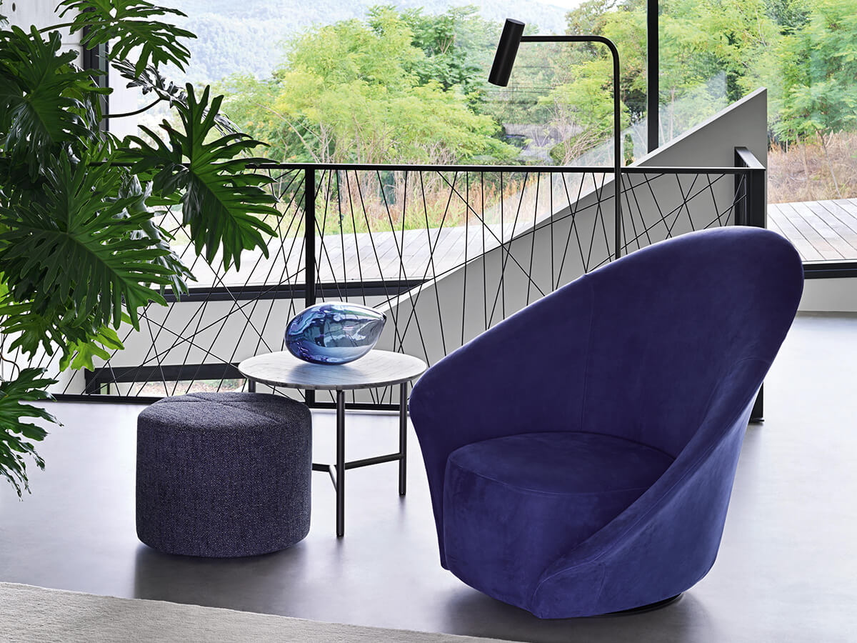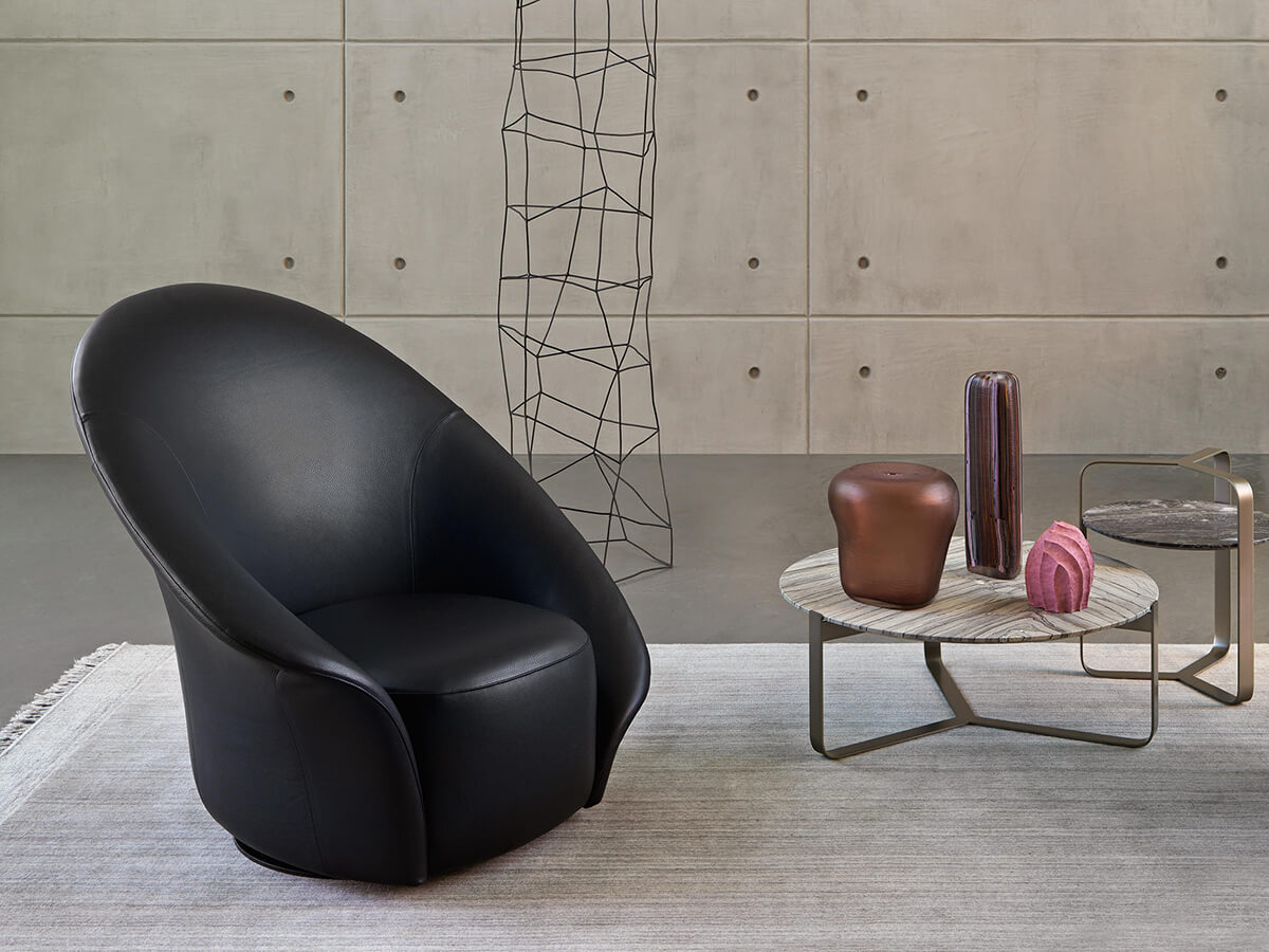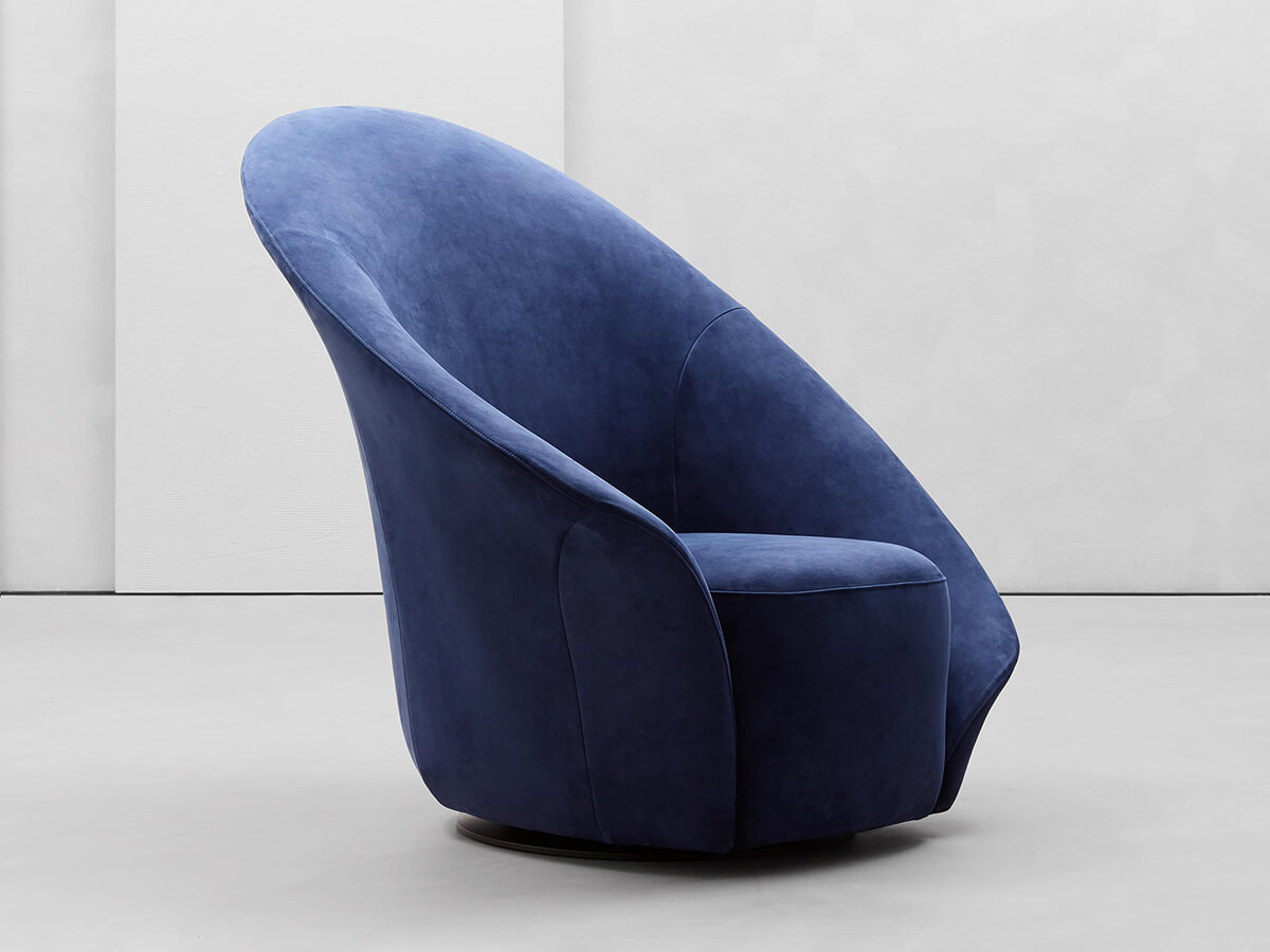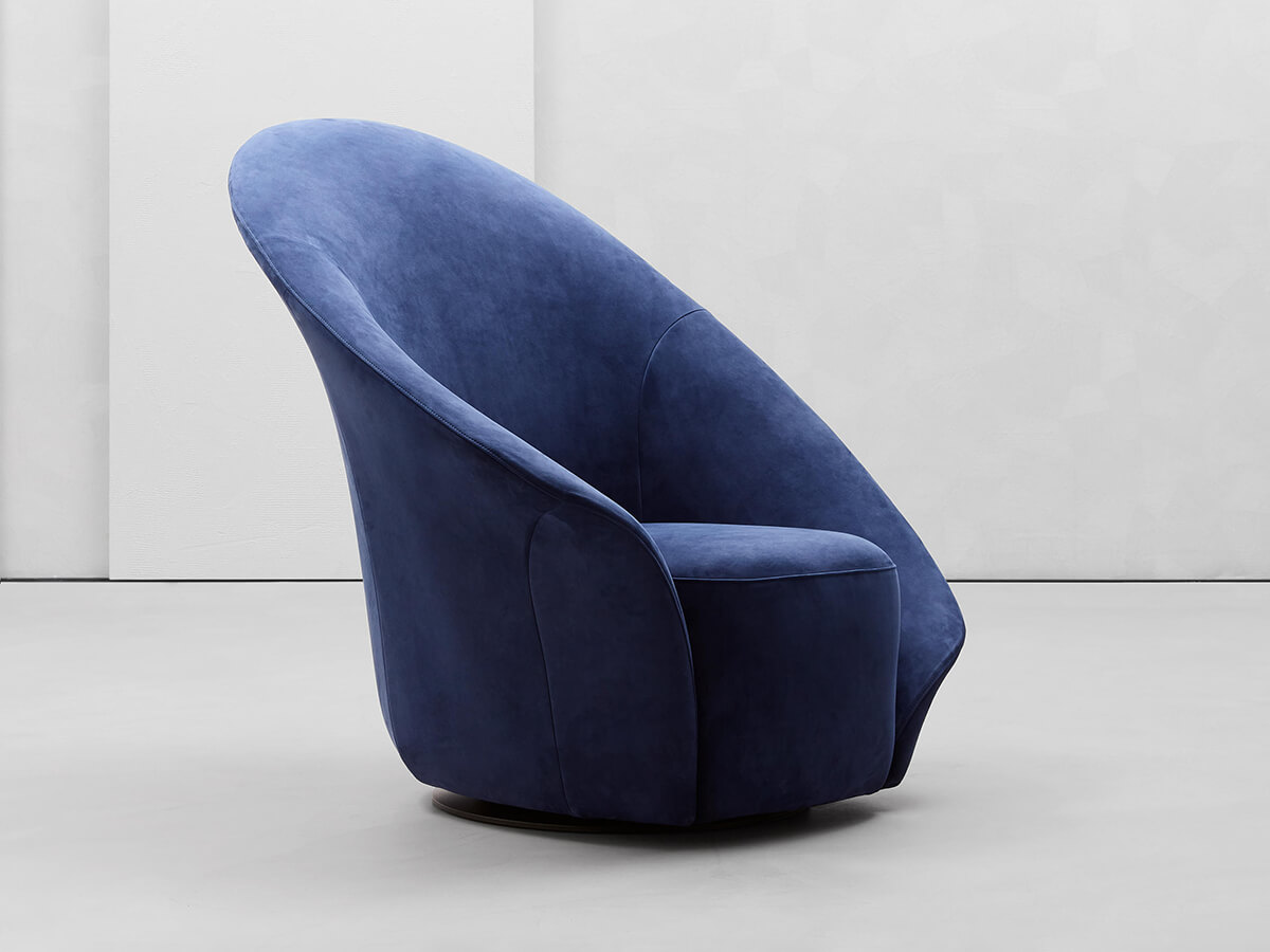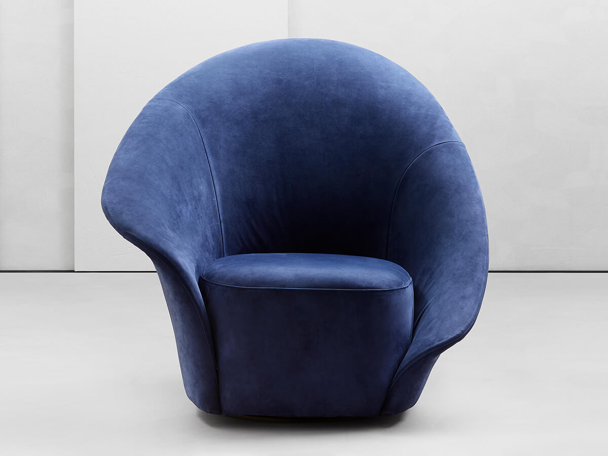 Softness, style and design are intertwined in this creation by Steve Leung. Lilia is a 360 ° swivel armchair whose shapes are reminiscent of both a petal and a precious shell hatched to accommodate the seat cut out in the caesura of the large backrest. The idea of a corolla is finely proposed by the generous asymmetries of the armrests capable of intriguing and giving a touch of contemporaneity to the design. This project can be available in fabric or leather in two different variants: one for the outside of the backrest and the other for the inside and the seat. Wherever you want to place it, Lilia is able to give a touch of elegance to any room in the house.* Technical features: available in both one-color and two-color versions