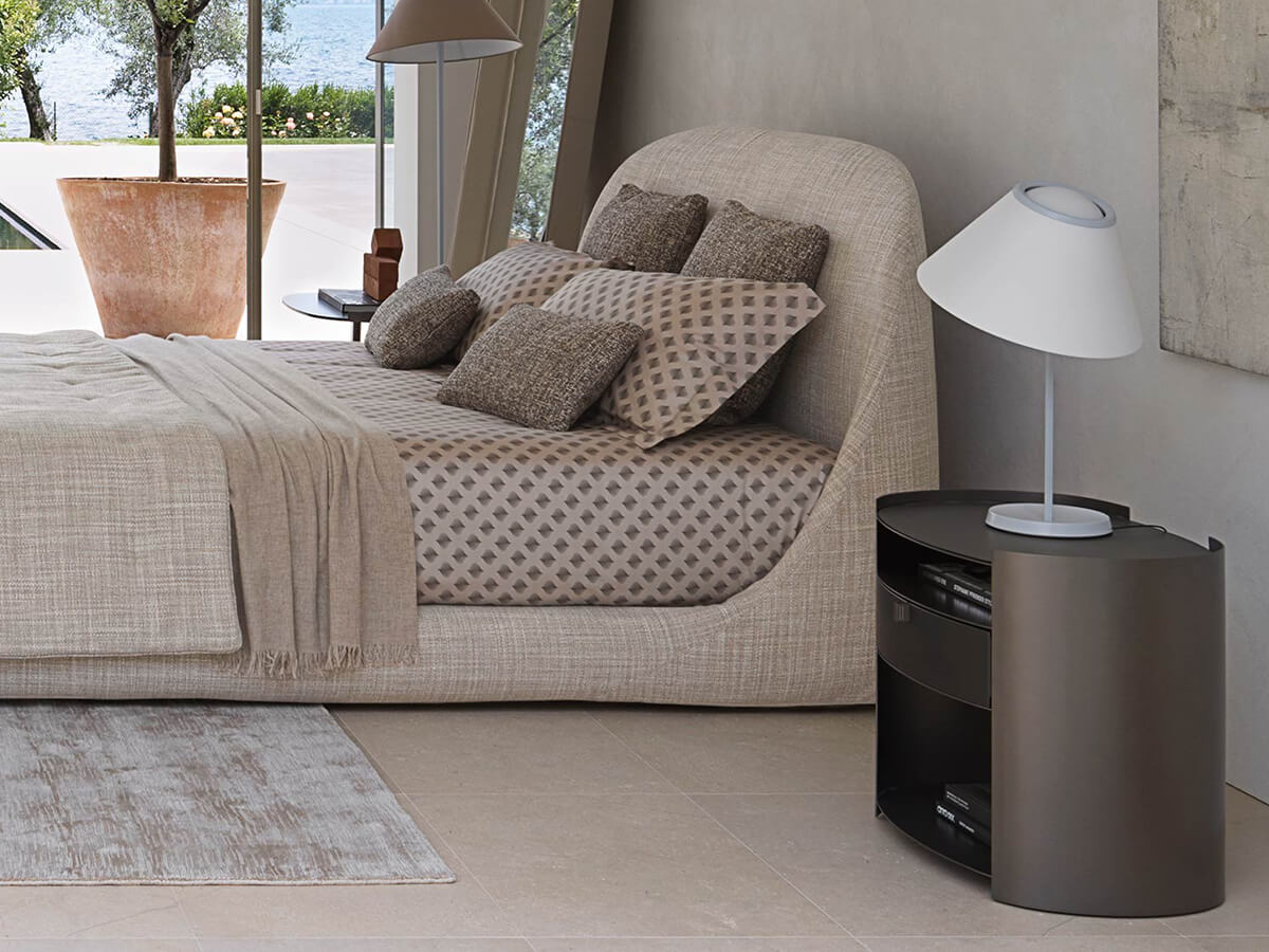 Flou was born in Meda in 1978 from the idea of the Knight of the Order of Merit for Labour Rosario Messina to make the culture of sleep an authentic personal mission. Rosario Messina was able to follow the changing needs and trends of housing by introducing innovative and modern products in the market. Among the first beds proposals of the company, there is a revolutionary product considered the founder of modern textile beds: the Nathalie, signed by the Architect Vico Magistretti. Very first bed with removable coverings, the Nathalie marked the beginning of a long series of important awards for the company.Read more