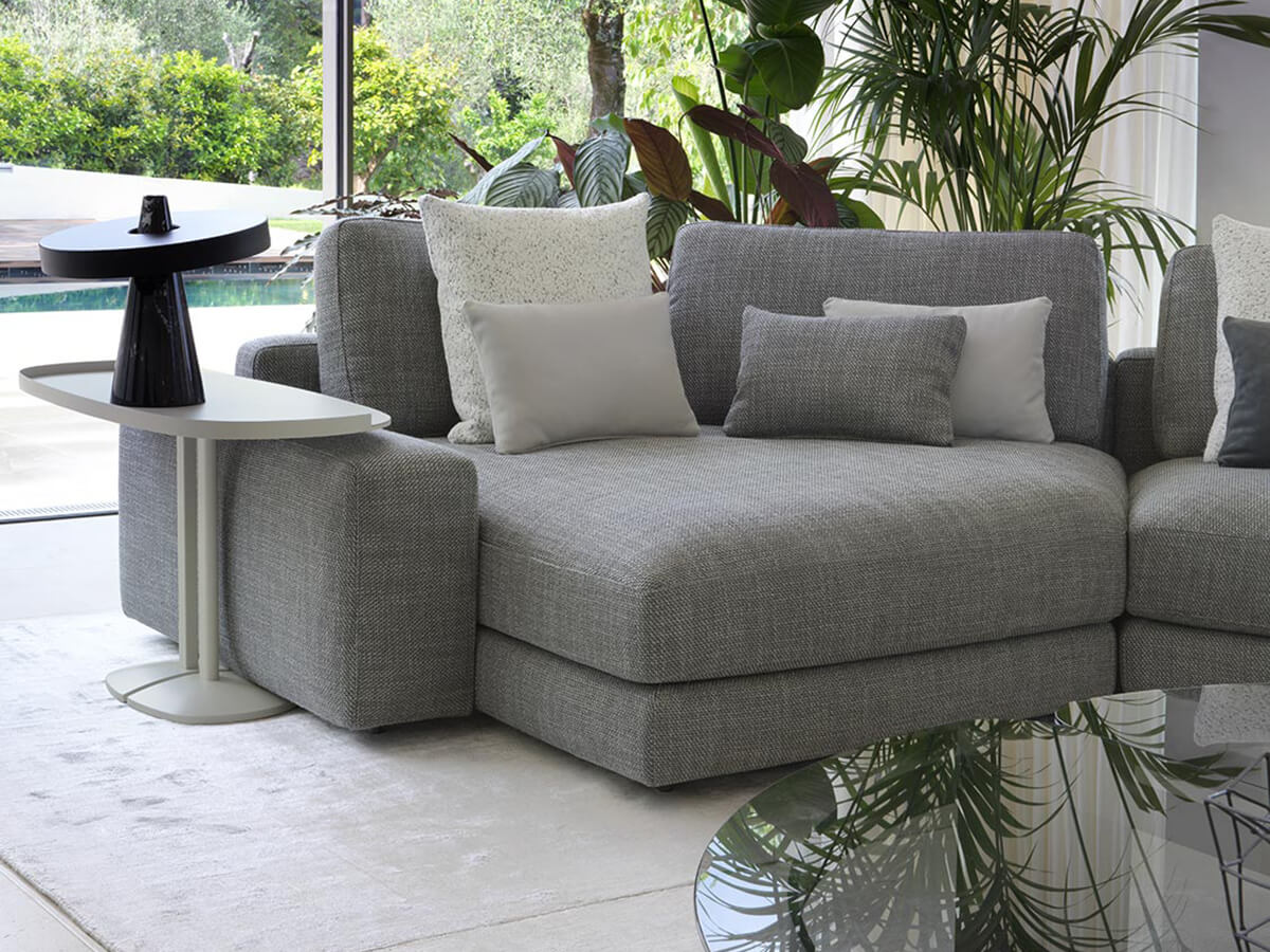 Elegance and craftsmanship come together in this modular sofa that makes tradition the point of support on which to unveil new lines and unpredictable solutions. Perfect in terms of relaxation and comfort, MyPlace has three different seat depths and the compositional freedom of freely customizable bases, armrests and backrests according to the taste or structural needs of the living spaces in which it will be placed. Available with leather, fabric or eco-leather covers, MyPlace is completely removable and complete with square or cylindrical feet. A tray in different finishes can be anchored to the bases providing an additional element of personality to the compositions.