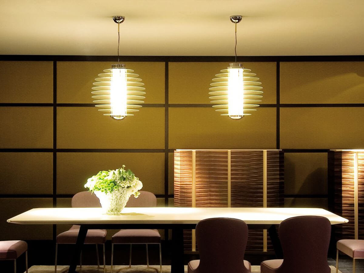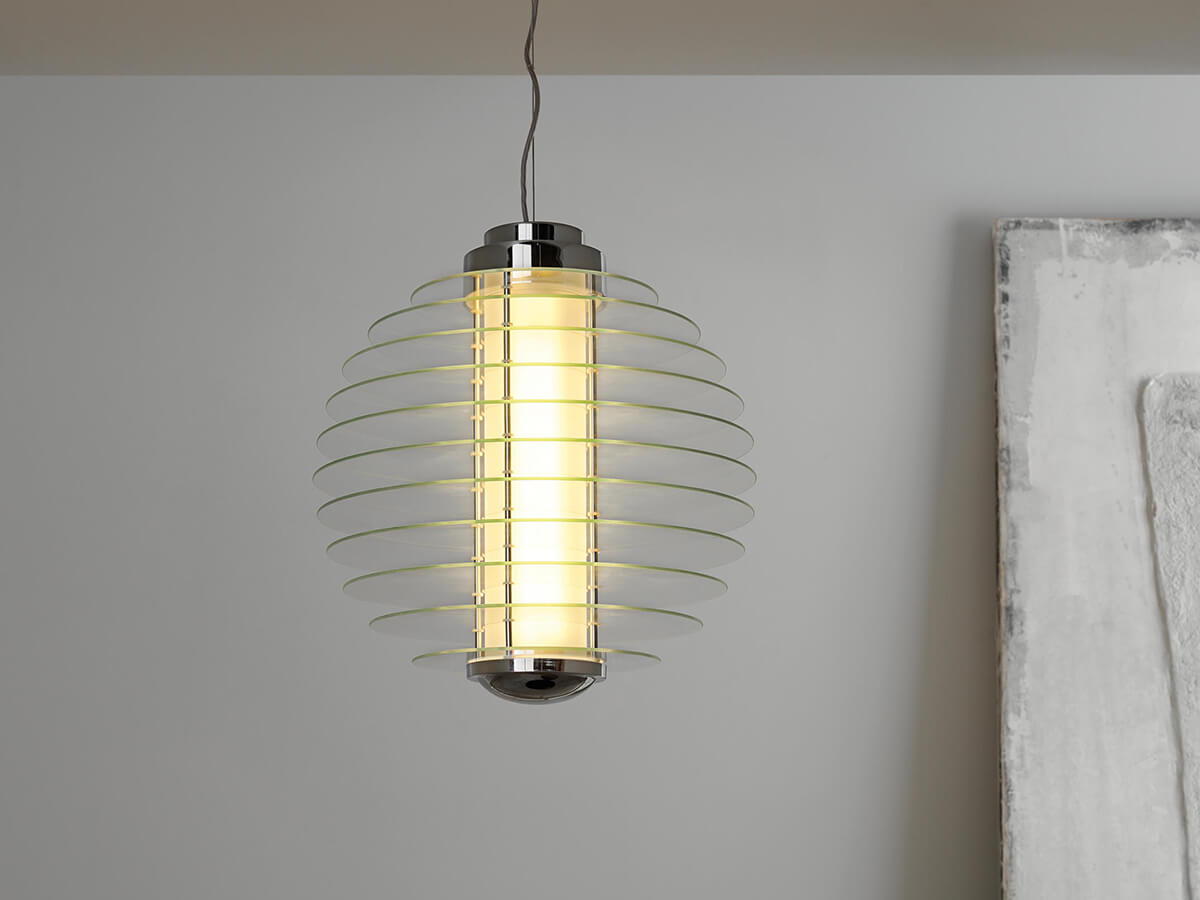Another masterpiece by Gio Ponti, able with his essential and flawless trait to mark the style of his time. 0024 was designed for Fontana Arte in 1933 and since then it has kept its value intact up to the present day, where it still lends itself to illuminating diversified environments. It consists of a sequence of horizontal discs in transparent tempered glass, balanced so as to create a graceful alternation of chiaroscuro. 0024 is available in both floor and suspension versions, also in xxl format which triples the diameter of the classic version up to 150 cm. This versatility guarantees it can adapt to particularly heterogeneous environments and needs.