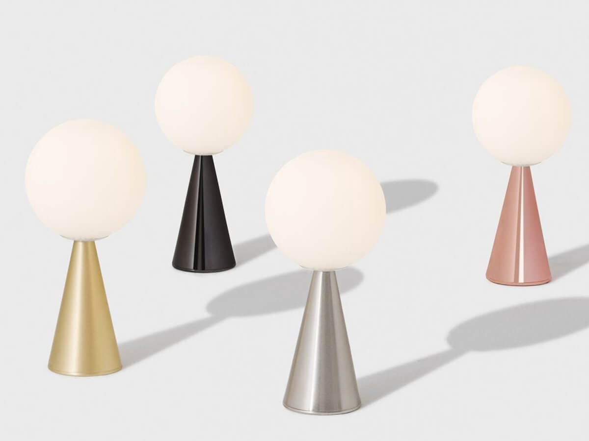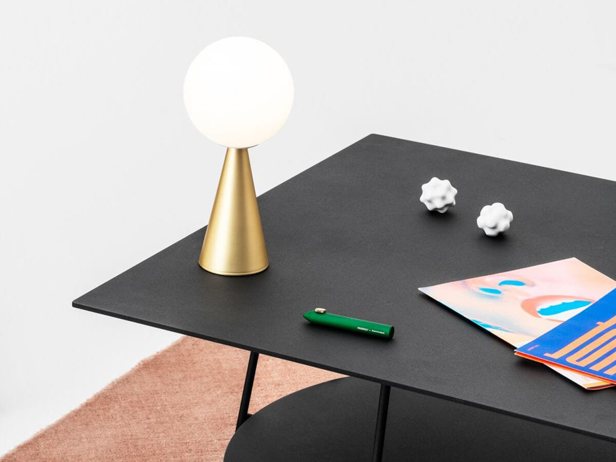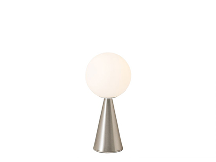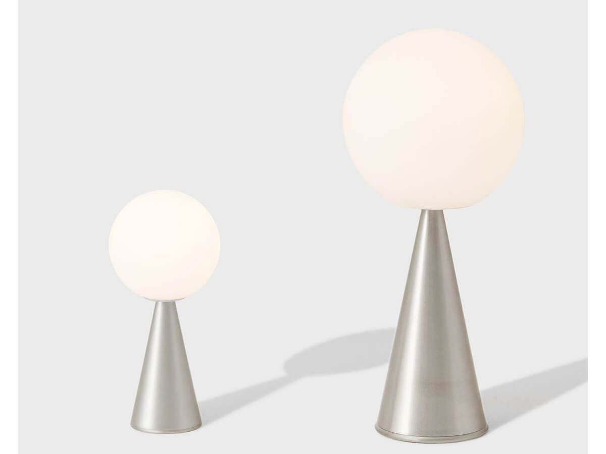Essence, design and art come together in one with Bilia, a lamp by Fontana Arte designed by Gio Ponti in 1932. Visually it appears as a simple sphere resting, in an apparent balance, on a cone that acts as a base. The geometric contrast between these two elements, cone and sphere, creates an extremely original and measured effect, an authentic hymn to the essentiality of forms. Bilia features non-reflective materials, so that the light is discreetly diffused, to better match the colors of the surrounding environment. This lamp can also be presented in the Mini version, more contained and practical in case you decide to transport it or use it in small spaces.