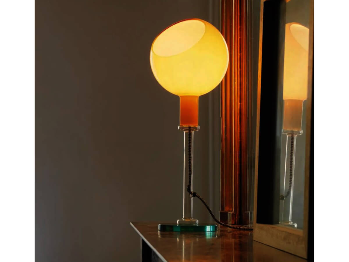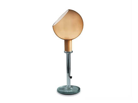 A little forgotten classic of Italian light design, the Parola lamp by Fontana Arte dates back to the early years of the successful period in which the historic Milanese lighting brand was under the artistic direction of the famous Gae Aulenti, who for the design of Parola (dated 1980) also avails itself of the collaboration of Piero Castiglioni for the lighting engineering part. Parola brings together three different glass processes in a small space: on the circular crystal base rises a transparent stem, which lets you see the cable passing through it and which supports a globe cut neatly on one side. This lampshade is in colored opal blown glass and can be oriented in different directions.