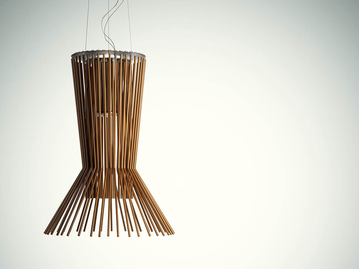 The spectacular suspension lamps of the Allegro series by Foscarini are perfect both to give a touch of liveliness to private environments and to illuminate public spaces such as restaurants, hotel lobbies or shops in a highly spectacular way. Different in shapes and sizes, Allegro lamps are unified by the same basic concept: long aluminum rods are cascaded around the central lighting body and define important and elaborate silhouettes, always perfectly symmetrical. Available in different color finishes and variants, the various lamps of the Allegro series - from the simplest Allegro Vivace and Allegretto Vivace to the more composite Allegro Ritmico and Allegro Assai - are also perfect to be combined with each other, thus creating a true own symphony of light.