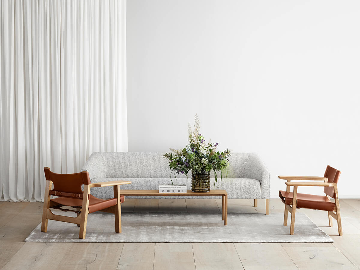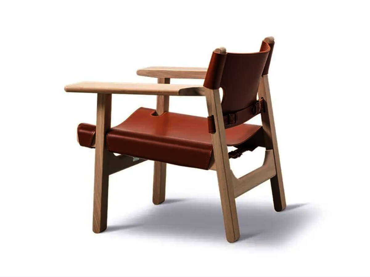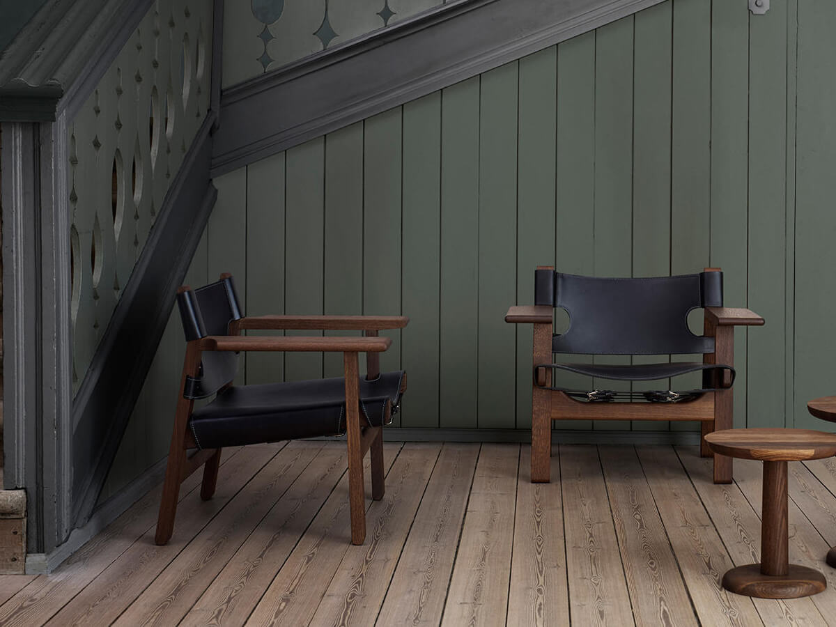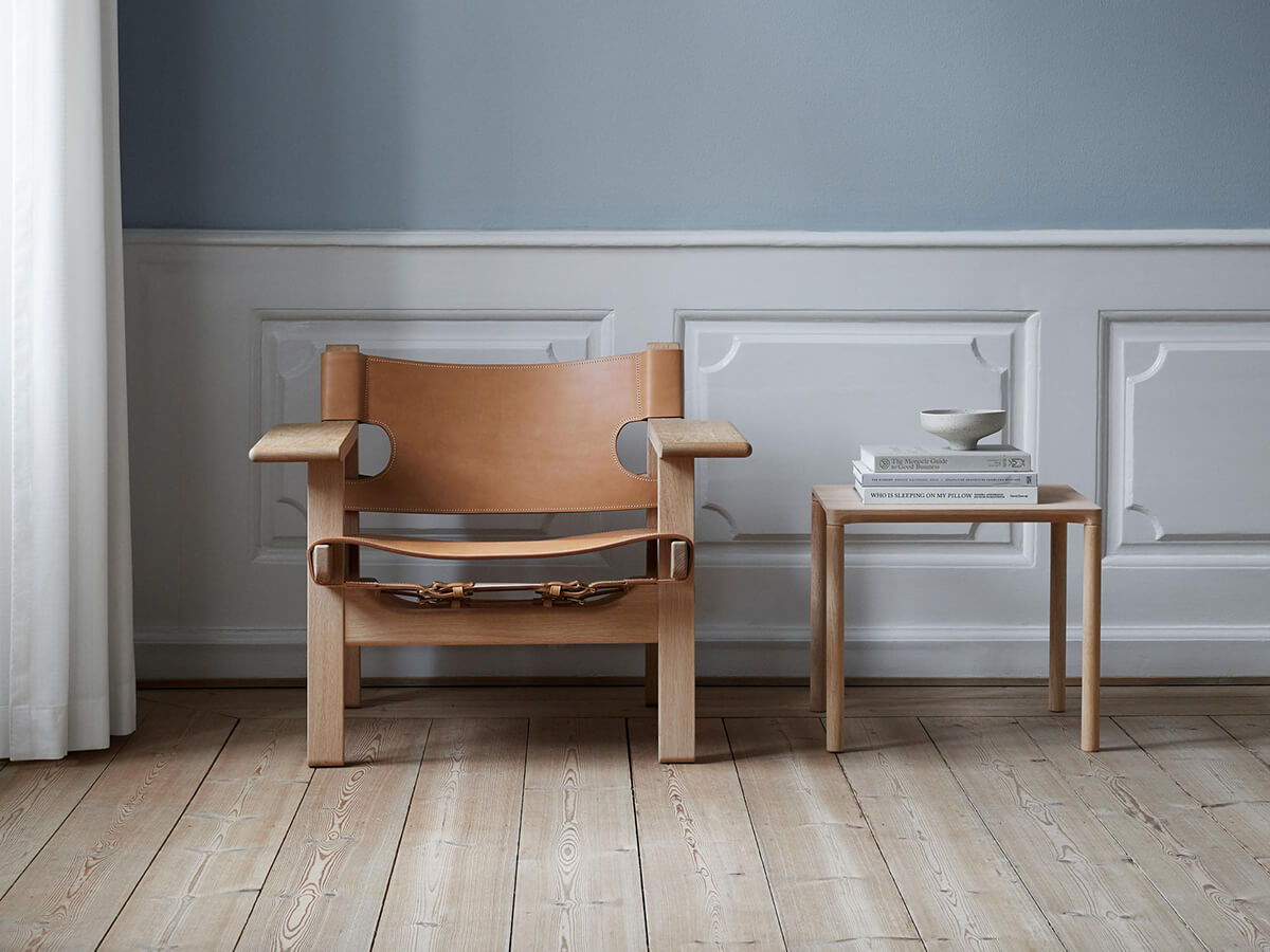 The Spanish Chair by Fredericia is probably the most famous creation of one of the great masters of Danish design, Børge Mogensen, known above all for his ability to adapt ideas drawn from the traditional furnishings of distant cultures to the Scandinavian design concept. For his Spanish Chair of 1958, Mogensen found inspiration in Medieval Spain, where armchairs were in use in which the seat and back were made up of two long and taut strips of leather. A choice that can also be found in the Spanish Chair, enriched however by constructive details of high saddlery and by a low wooden seat that gives it an unmistakably Nordic taste.