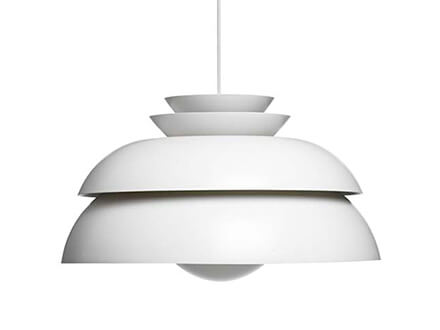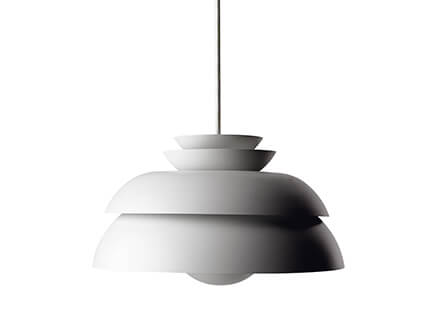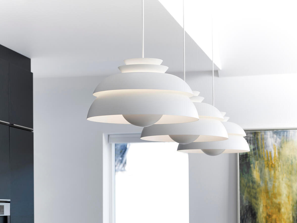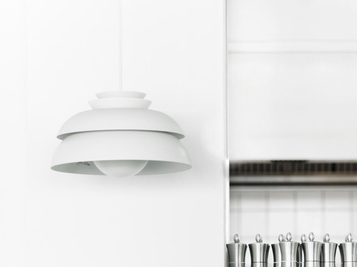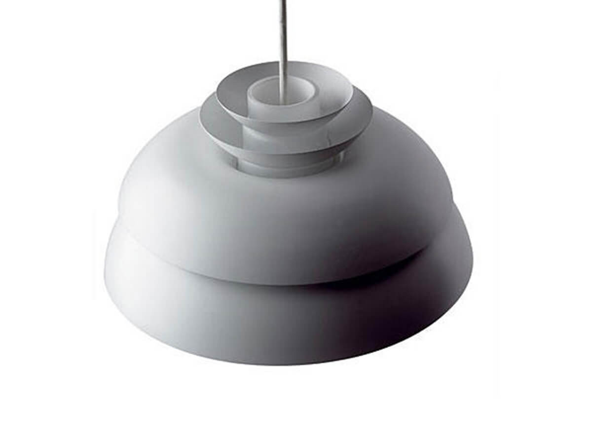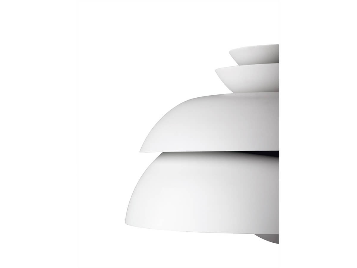 The Concert pendant is designed by Jørn Utzon, the great Danish archistar famous above all for having created one of the most iconic buildings of the entire twentieth century, the Sydney Opera House. And it is precisely from the shapes of this theater that the Concert lamp draws its inspiration, with the play of overlapping caps that give life to chiaroscuro and plays of light just like in the scenographic roof of the Opera House. Available in two different sizes and in two colors (white or black), Concert projects a pleasant and uniform light and is particularly suitable for being placed on a dining table, alone or as a couple.