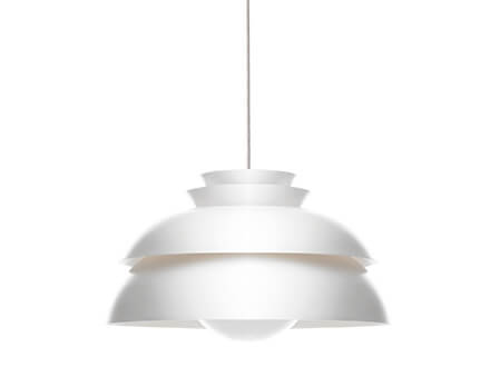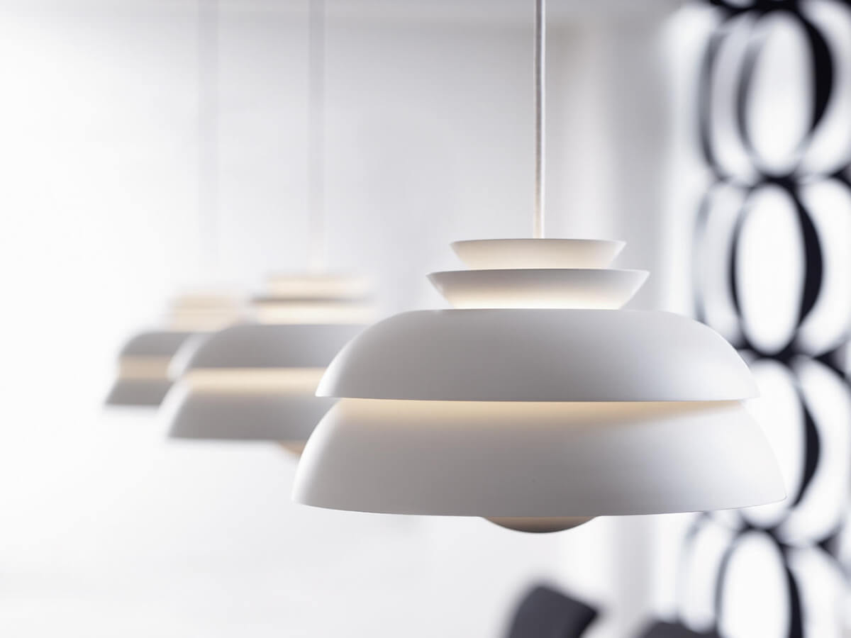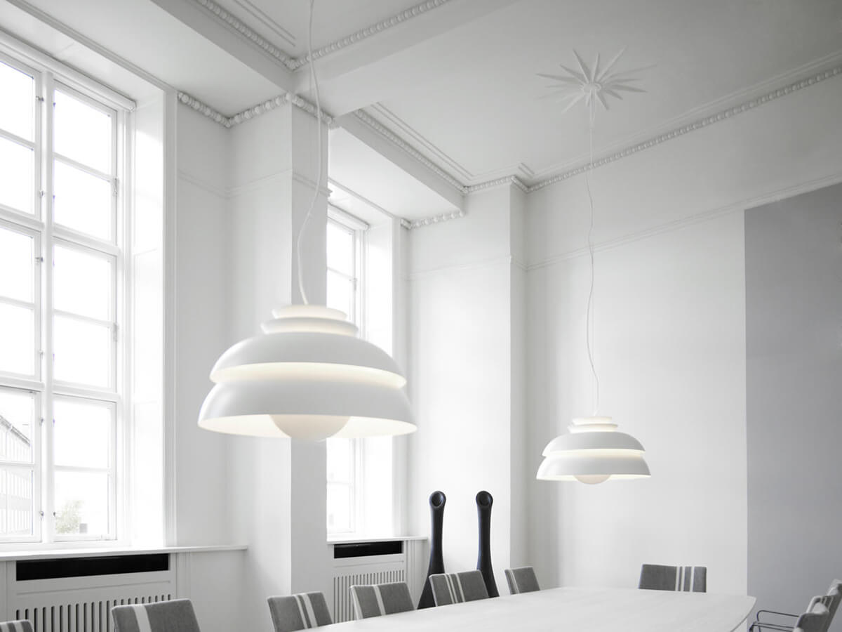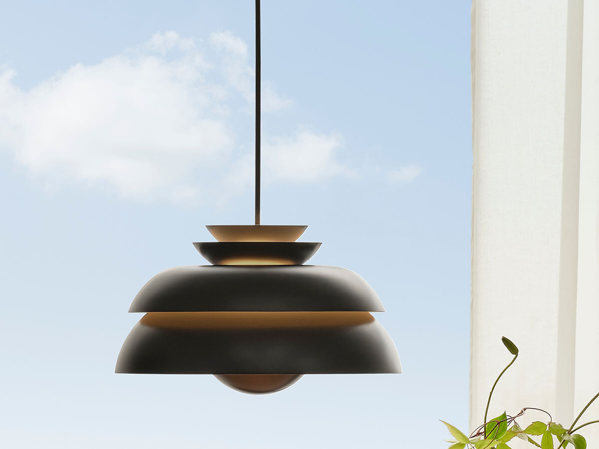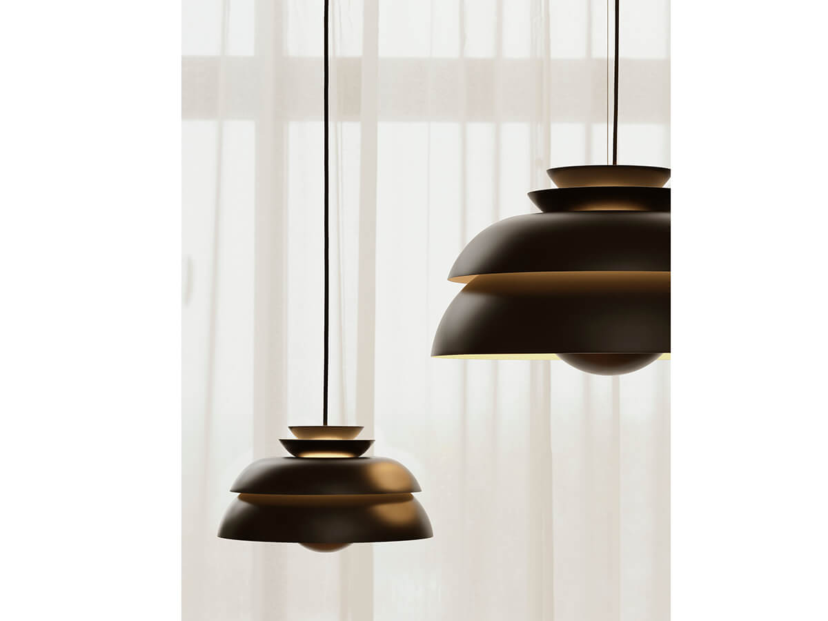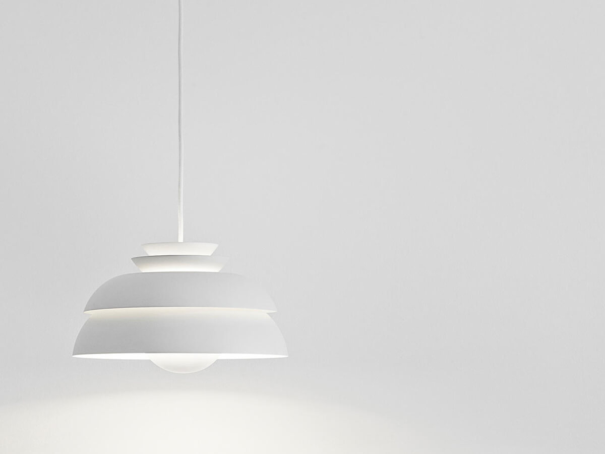 The Concert pendant is designed by Jørn Utzon, the great Danish archistar famous above all for having created one of the most iconic buildings of the entire twentieth century, the Sydney Opera House. And it is precisely from the shapes of this theater that the Concert lamp draws its inspiration, with the play of overlapping caps that give life to chiaroscuro and plays of light just like in the scenographic roof of the Opera House. Available in two different sizes and in two colors (white or black), Concert projects a pleasant and uniform light and is particularly suitable for being placed on a dining table, alone or as a couple.