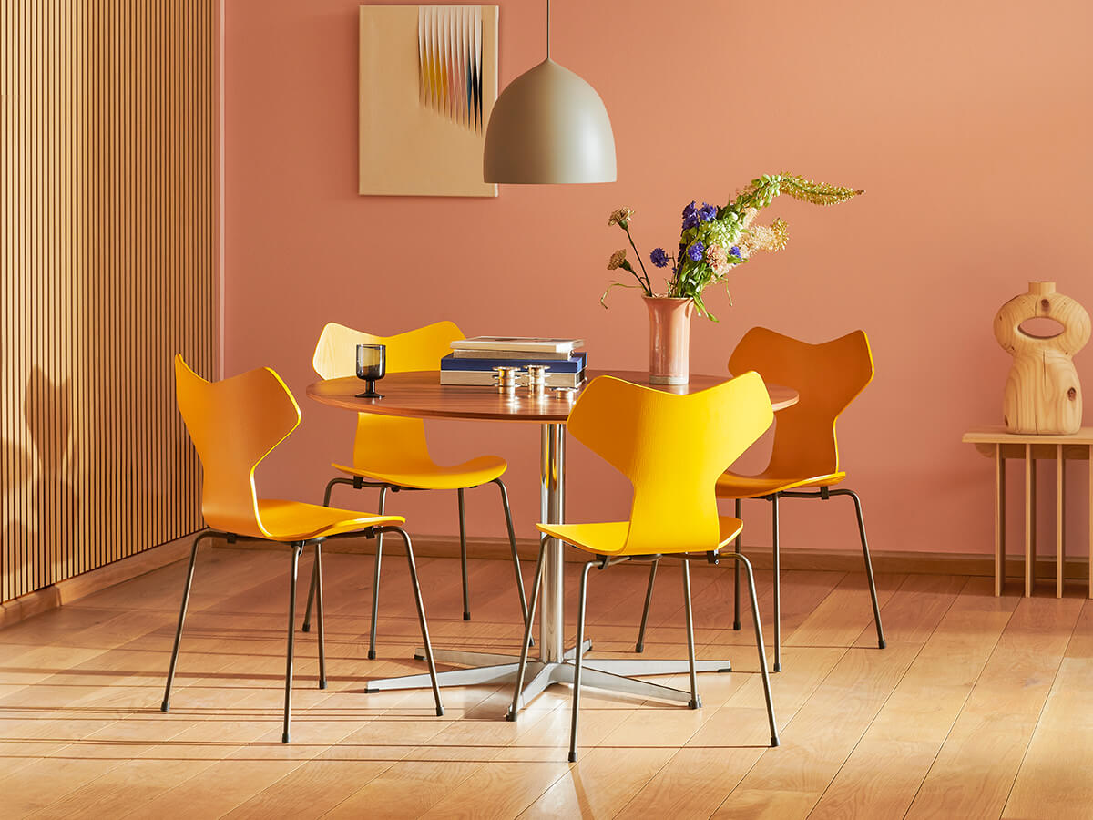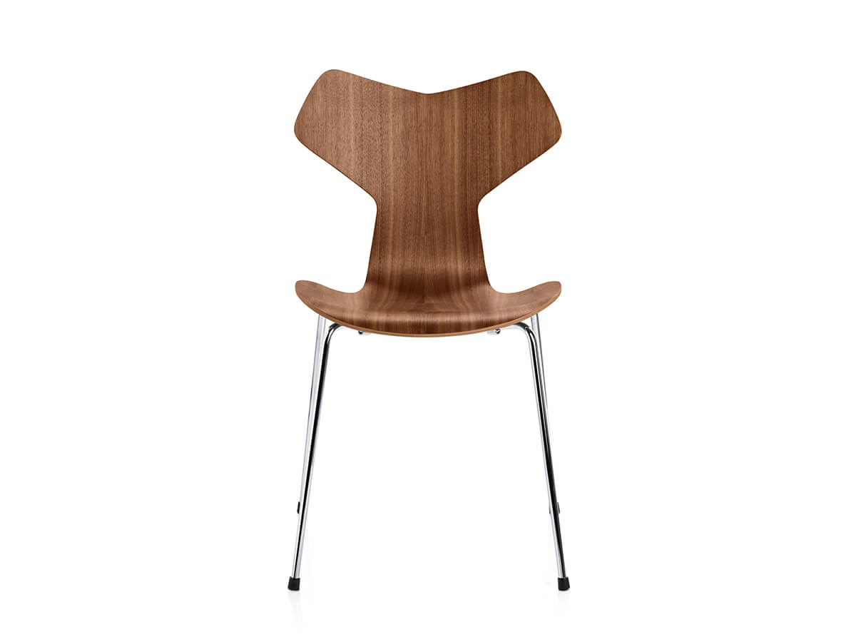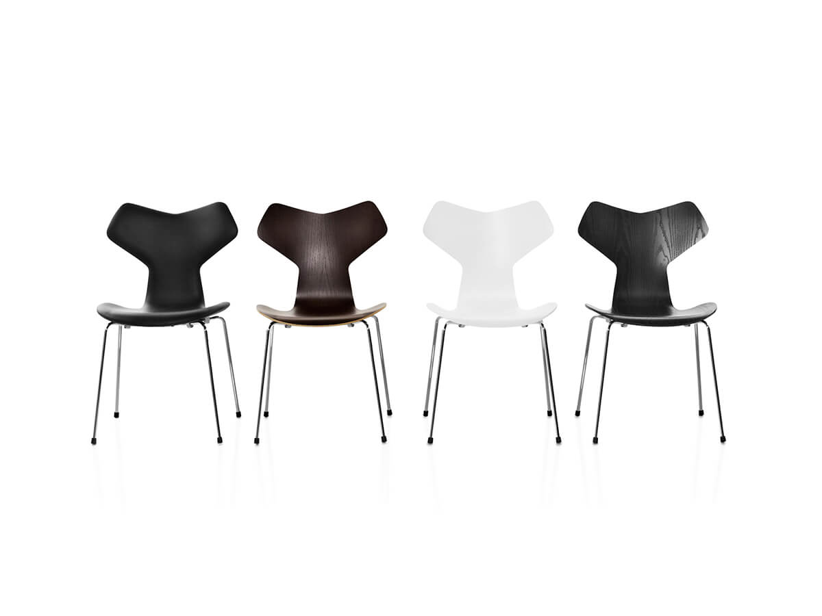 The Grand Prix chair by Arne Jacobsen, produced by Fritz Hansen, owes its name to the victory of the main prize at the XI Milan Triennale in 1957. The seat, comfortable and practical, is characterized by a backrest that has narrower shapes in its part central and then open upwards into two large ears that act as support for the shoulders. The four legs, originally only in wood - unique in Jacobsen's production - are now also available in a metallic finish. Historic product of great success, the Grand Prix chair can be proposed in a great variety of interpretations: entirely in wood, with a warmer and more articulate feeling, with the seat covered in fabric, which makes it perhaps more suitable for common spaces and uses. contract, or even with a leather seat that enhances its elegance.