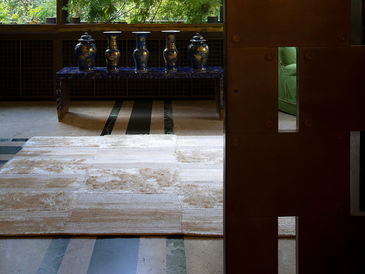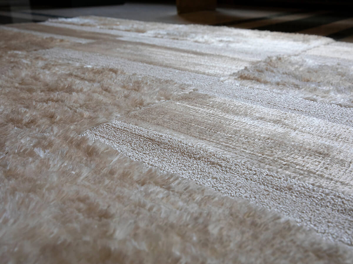 Kama was born in 2001 and immediately became a best seller of the GT Design company. It is in fact the first carpet made of a sumptuous and wild hand-woven viscose fibre, capable of capturing the light and reflecting it on its weaves so as to further enhance its aesthetic value on the fibres. Kama's design is by Deanna Comellini who oversaw its creation, making sure that quality and design rigor were respected in order to create a unique product. Ideal for the sleeping area and for the intimacy of bedrooms, Kama can be used also within living spaces or more convivial areas due to its incredible modernity.