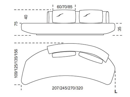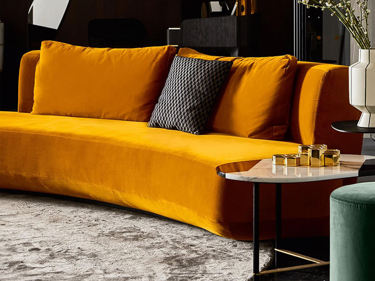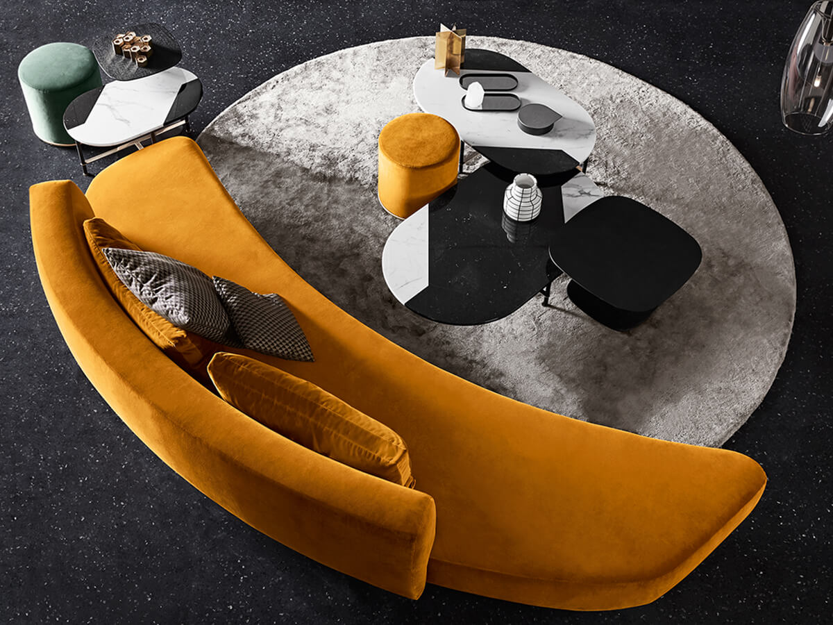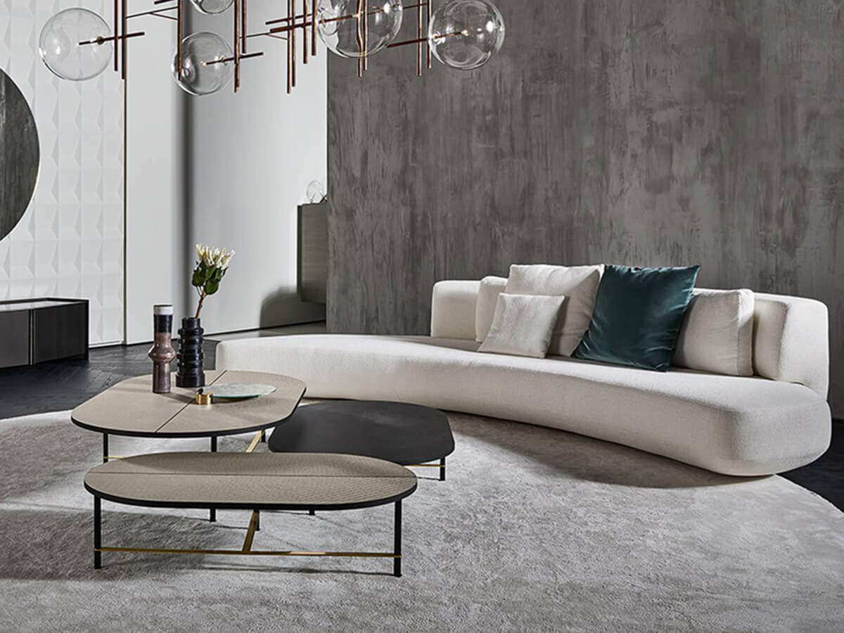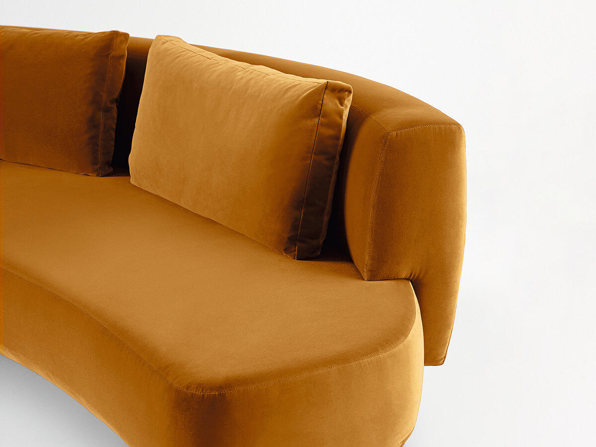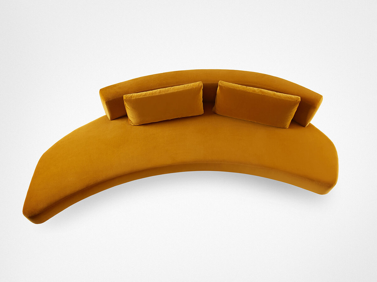 The Audrey sofa is one of the great icons of the Gallotti & Radice style. Its elegant and ultra-modern semi-curved shape helps to make the environment in which it is inserted alive and dynamic, outlining an unusual "boomerag" composition of wise formal tension. The effect of liveliness and movement is emphasized by the small size of the back, which does not follow the seat in its entirety. With Audrey, the designer Massimo Castagna managed to create an archetypal and essential shape, immediately recognizable and already highly imitated, fully in line with the latest trends in contemporary living. In the Audrey Motion version, the same concept is translated into a modular sofa, therefore capable of giving life to very customizable different compositions, always characterized by the distinctly curved sign of the seat. In the Audrey SX variant, on the other hand, its shapes are reduced to a minimum, in a very small sofa that almost takes on the function of a chaise longue or daybed.