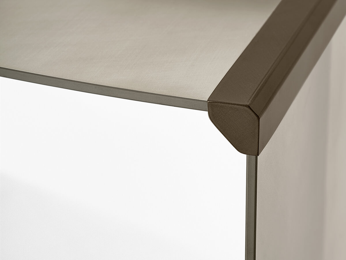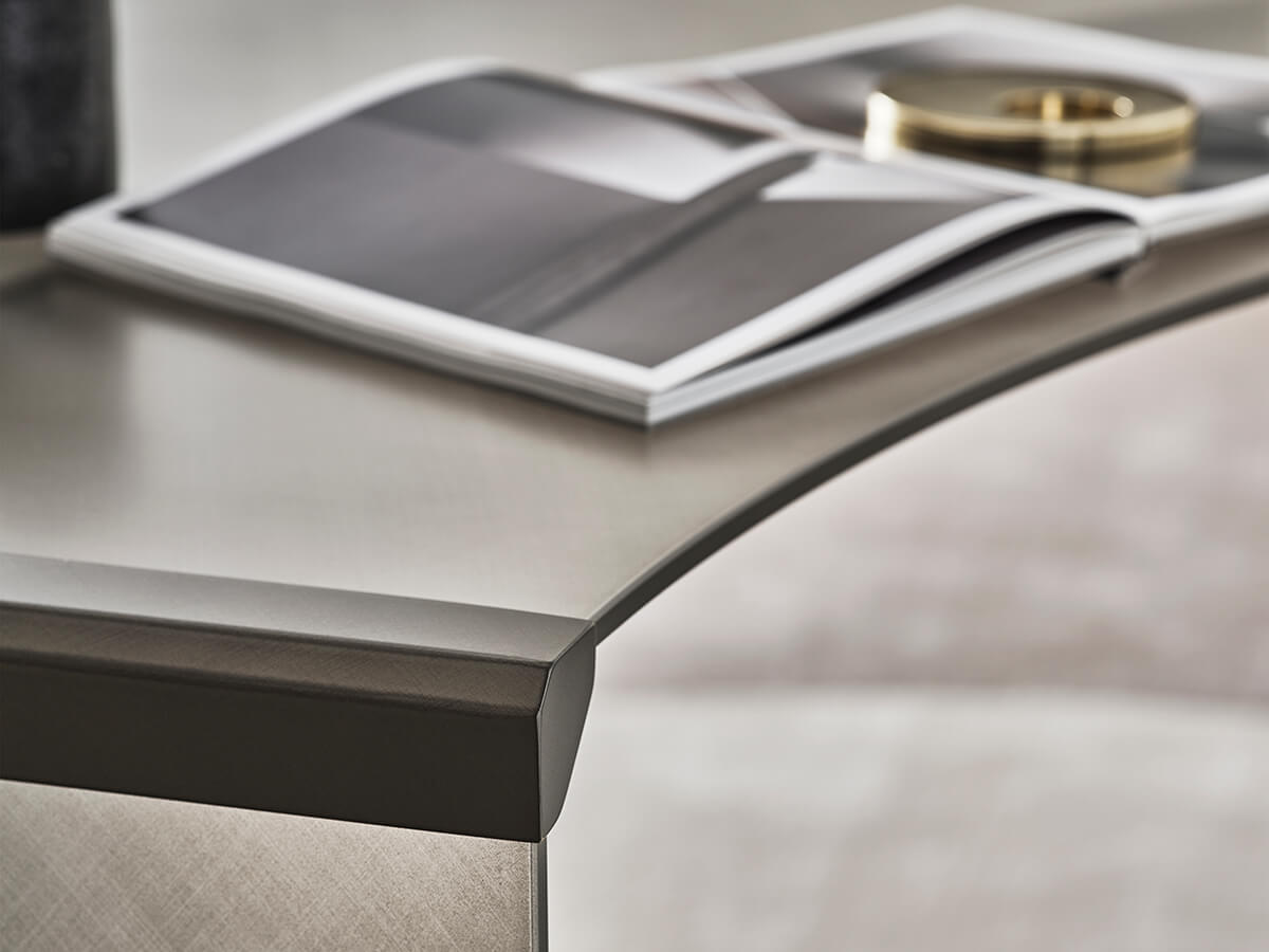 The President desk by Gallotti & Radice bases its charm on the material of which it is almost entirely made, crystal. The juxtaposition of metal details and clearly visible metal crosspieces, with an important structural function, to the crystal emphasizes its high-tech aesthetics. The shape is almost minimalist: two large lateral glass plates take on the function of legs, while the spacious, slightly curved top gives it a sense of dynamism. The top can be drilled if necessary to allow the passage of cables. The President Junior and President Senior variants differ in size (smaller for the first, imposing and enlarged for the second), while in the President Gold Edition the crystal is painted in a very luxurious finish.* Technical features for the Gold Edition version: in crystal in exclusive Crisscross Gold finish and metal parts in crisscross Gold finish; in numbered edition