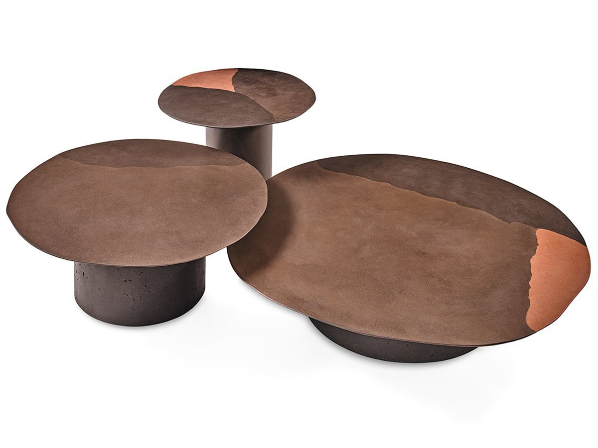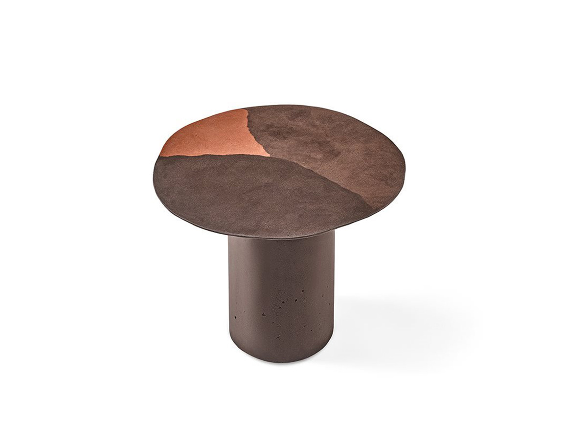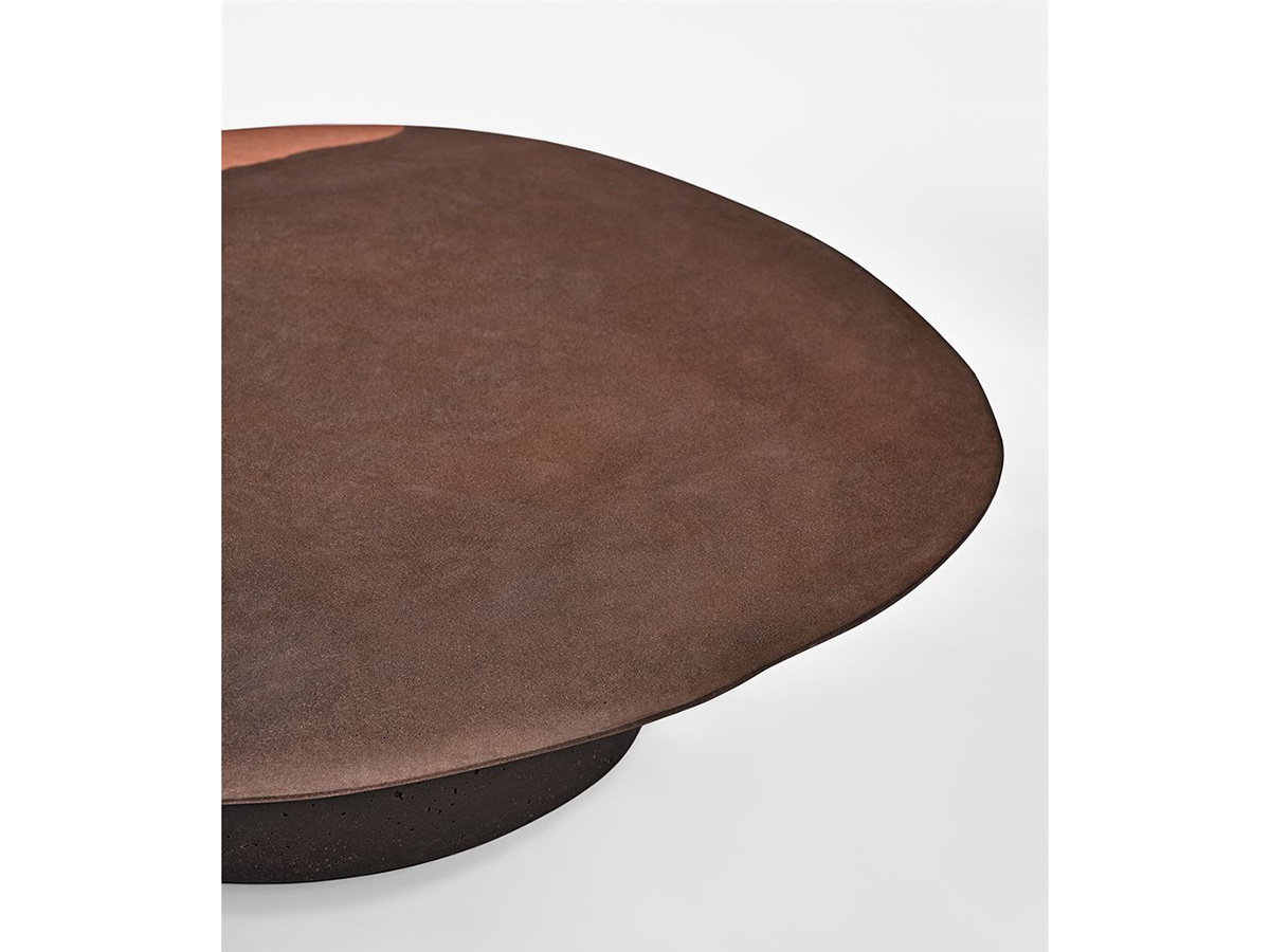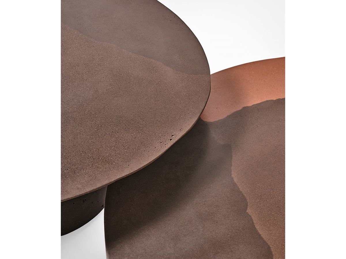 A coffee table with a refined style, which aims to reduce any surface element to a minimum to convey the very essence of materiality to the eye. It is a single-material element in recycled glass available in different finishes including "terra melange" with a strong and monolithic base. Re-Verre is the result of the talent of Federica Biasi and is distributed by Gallotti&Radice to enrich homes all over the world, in particular dining rooms and living areas where there is a need for a simple but particularly elegant support element. The workmanship is artisanal and manual, which is why the measurements are indicative as the porous surface is not always completely flat.
