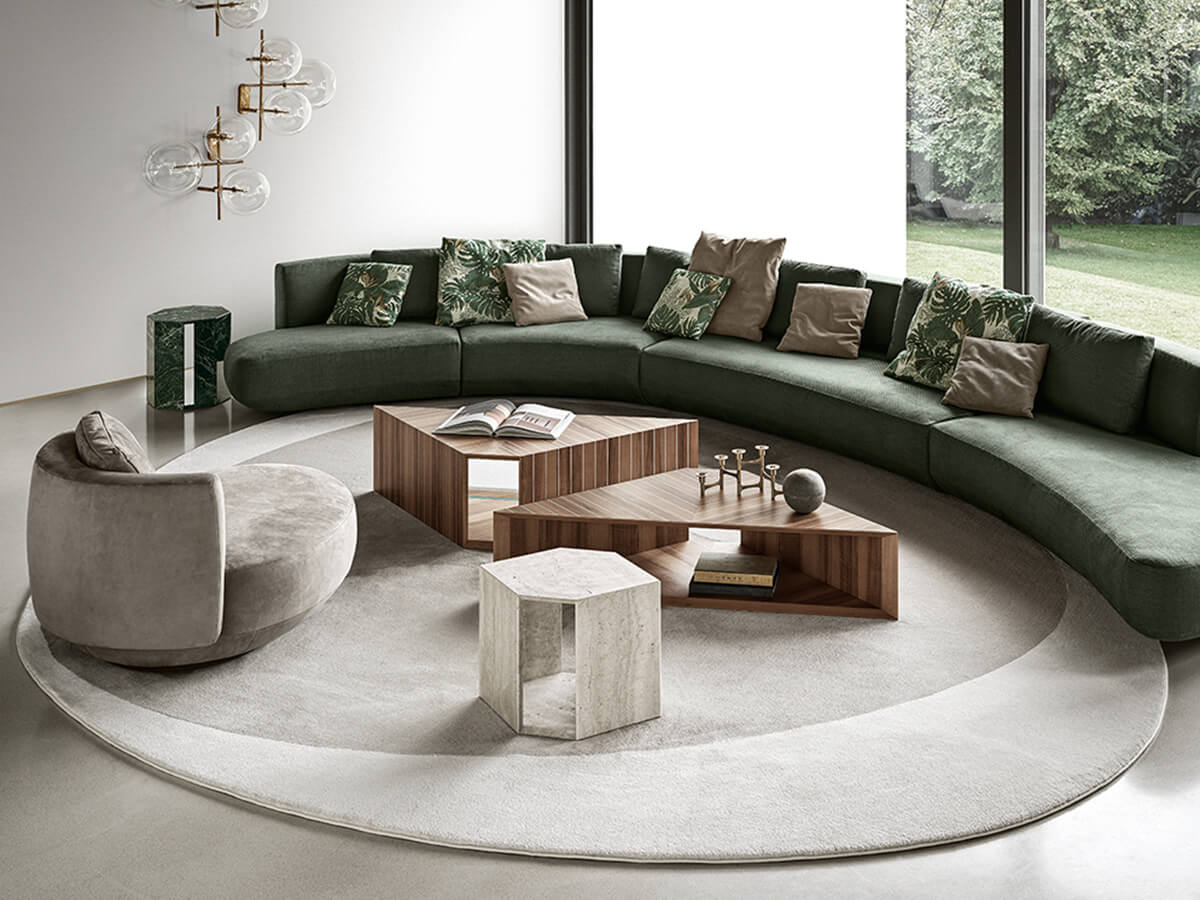 Designed by Massimo Castagna, the Ruggy carpet by Gallotti & Radice has an unusual oval shaped irregular shape and a characteristic design consisting of two different concentric shapes of different shades. A design that is both dynamic and very elegant, adaptable to any thanks to a selection of different color combinations. Soft and pleasant to the touch, Ruggy is a high-pile rug made of synthetic fiber using the tufting technique. Thanks to heat sealing, the different colored areas are juxtaposed harmoniously, without annoying joints on the surface of the carpet being visible.* Technical features: synthetic fiber carpet
