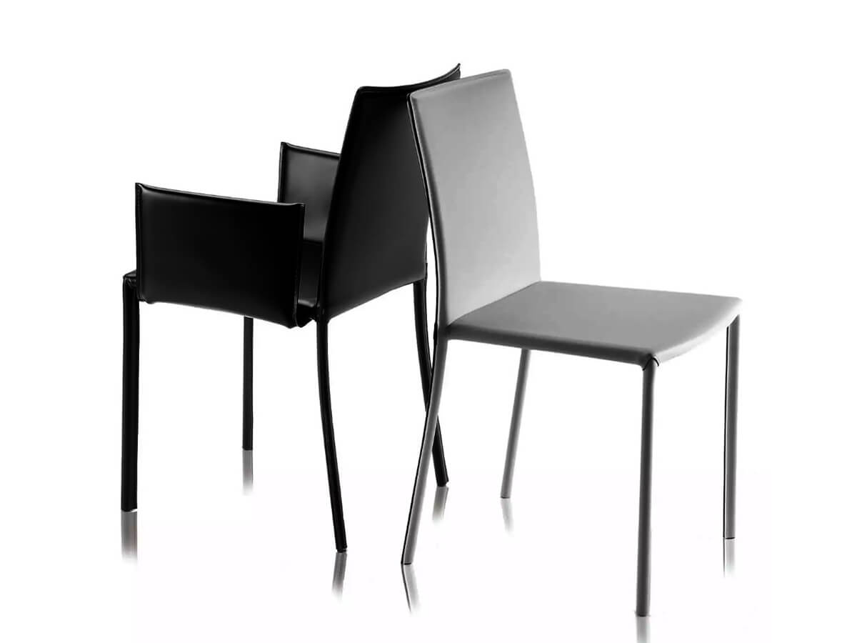 A unique piece of furniture that immediately established itself on the international design market thanks to its artistic and design quality. Twiggy is a chair with essential lines, slender and particularly light, which can be used both alone and around the table. The structure is made of steel, with seat and back upholstered in polyurethane foam to ensure maximum comfort for the body. An extremely versatile object also thanks to the precious saddle leather covering, a material known to be resistant to prolonged use. Twiggy is available in different colours, from the most classic to the most modern with leather-coloured or contrasting stitching.