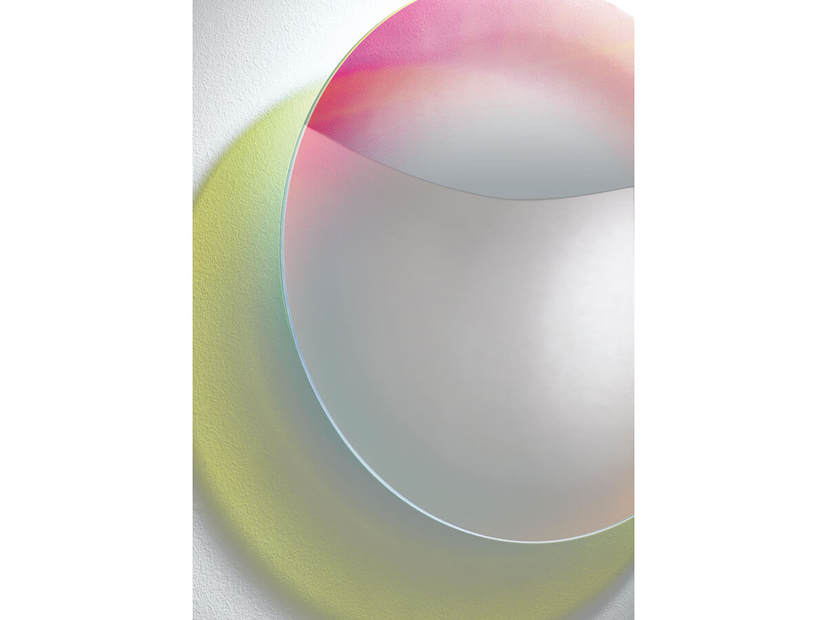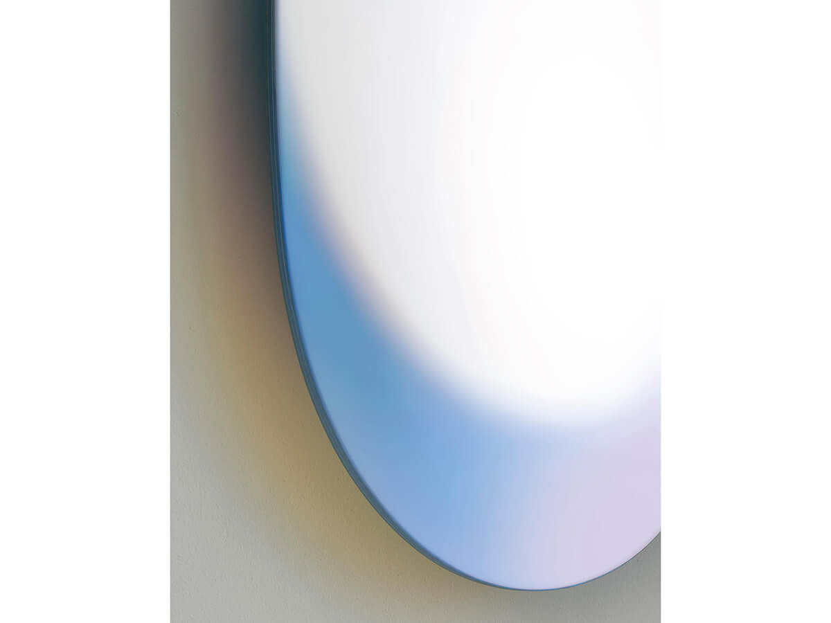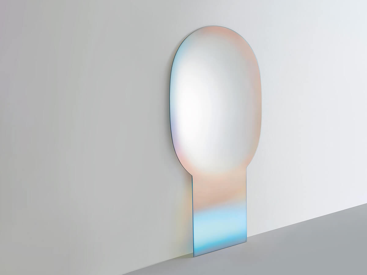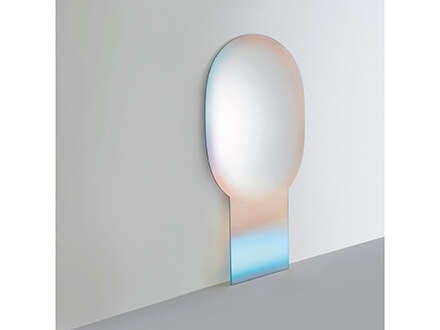 The Shimmer mirror collection was born from the genius of Glas Italia and the international designer Patricia Urquiola who imagines its different declinations and possibilities in a totally modern key and in step with the times. The Shimmer series is made of extralight crystal which, thanks to sophisticated manufacturing techniques, blends into a degrading nuanced mirroring, a delicate bichromatic geometric decoration with a wonderful iridescent multi-chrome finish. The result is a mirror that is different from the standard, unexpected and absolutely innovative, ideal for those who want to furnish with something different from the usual and particularly distinctive. Shimmer is available in different versions and colours, according to taste.