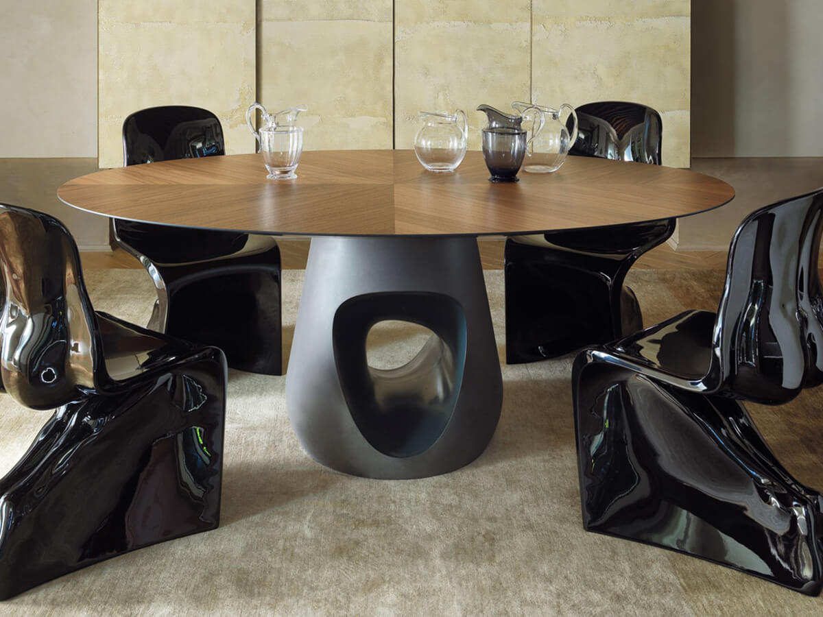 Barbara is born from the sophisticated elegance of marble, a table characterized by an oval or round top in Marquinia or Emperador marble, noble materials capable of enriching any environment with its scenic presence. No less striking and fascinating is the central base of this table, in concrete, deliberately intended to create a sense of solidity and material strength. The product comes from the works of the English sculptor Jocelyn Barbara Hepworth and from her study on the relationship between man, the environment and materials, a triptych that is widely explored here, giving life to a strong, emotional piece of furniture. The shape has been studied to give a touch of modernity to the entire figure, streamlining the vigor of the whole so as to make it more usable in different spaces of the house.