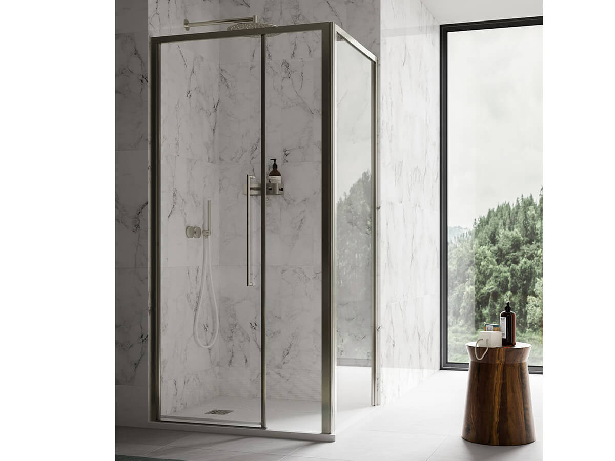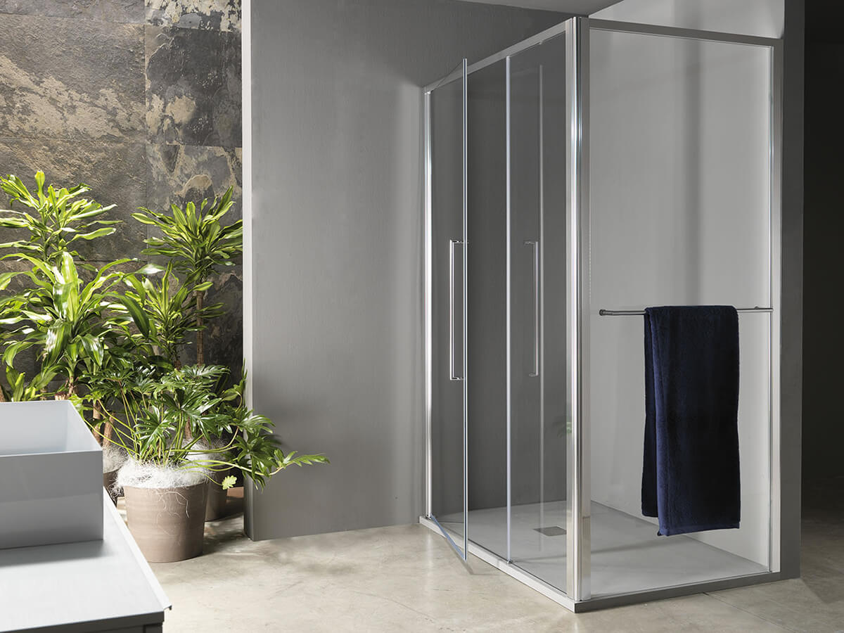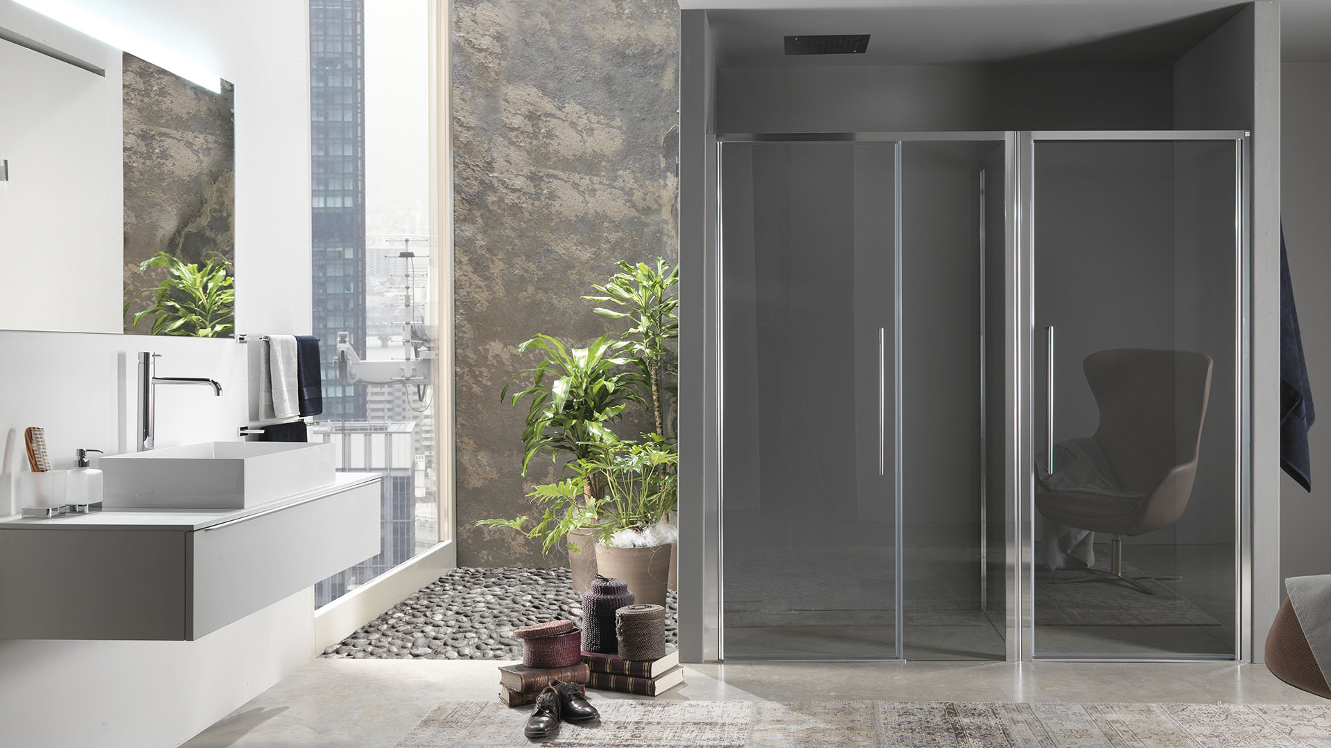 The Trendy Design shower enclosure by Inda is a versatile and elegant line of showers that can find places in bathrooms of different appearance and configuration, placing themselves in corner compositions or in niches that can be opened with both hinged and sliding doors. The sliding mechanism of the latter, particularly ingenious, includes a double scroll wheel that guarantees durability and resistance. The glass walls and doors of the Trendy Deisgn shower are available in different colors and finishes and are enclosed by a spectacular frame, which can also be customized in different metallic variants or in neutral colors such as white or black.