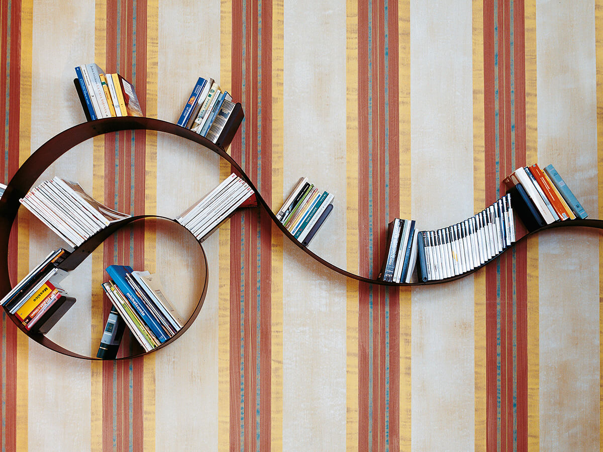 The Bookworm bookcase by Kartell, designed by Ron Arad in 1994, was one of the great classic protagonists of the relaunch of the brand during the 90s. Still fascinating and very current, it consists of a sinuous plastic material ribbon that winds along the wall and can be mounted in different positions in every home, dotted with some supports that allow you to keep books in place without letting them fall. Sinuous and enveloping, it gives its best in the most daring spiral compositions in which the books seem to defy the laws of physics. Bookworm was originally born in metal as an artistic project by Arad, who had created it for his London home as part of his experiments with welding that had led him to create other acclaimed works such as his Well Tempered Chair, but it is plastic version of Kartell to bring it to homes all over the world and make it a timeless classic.