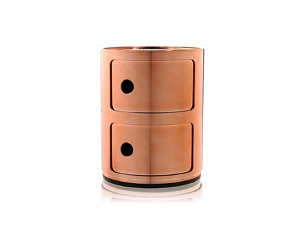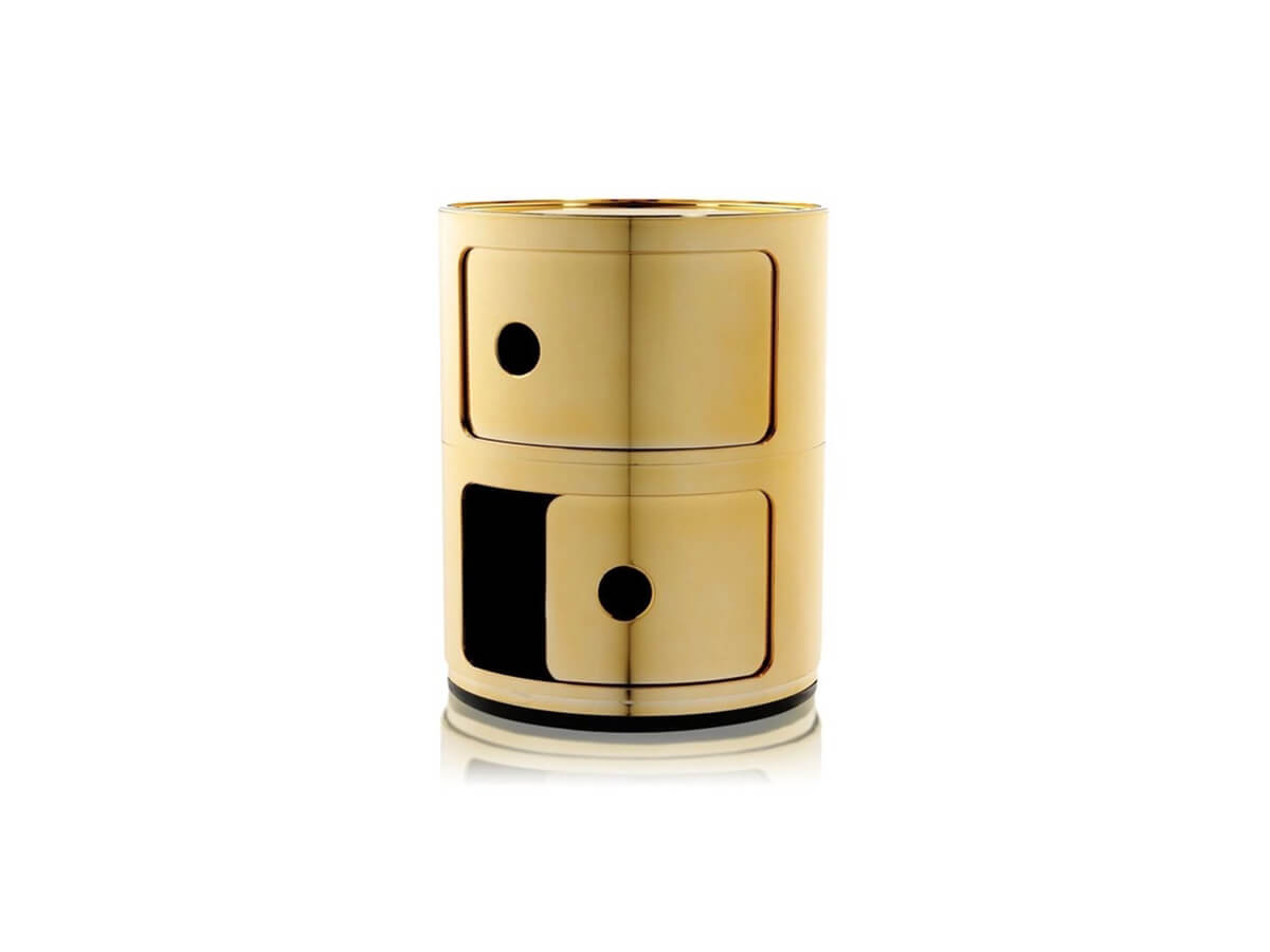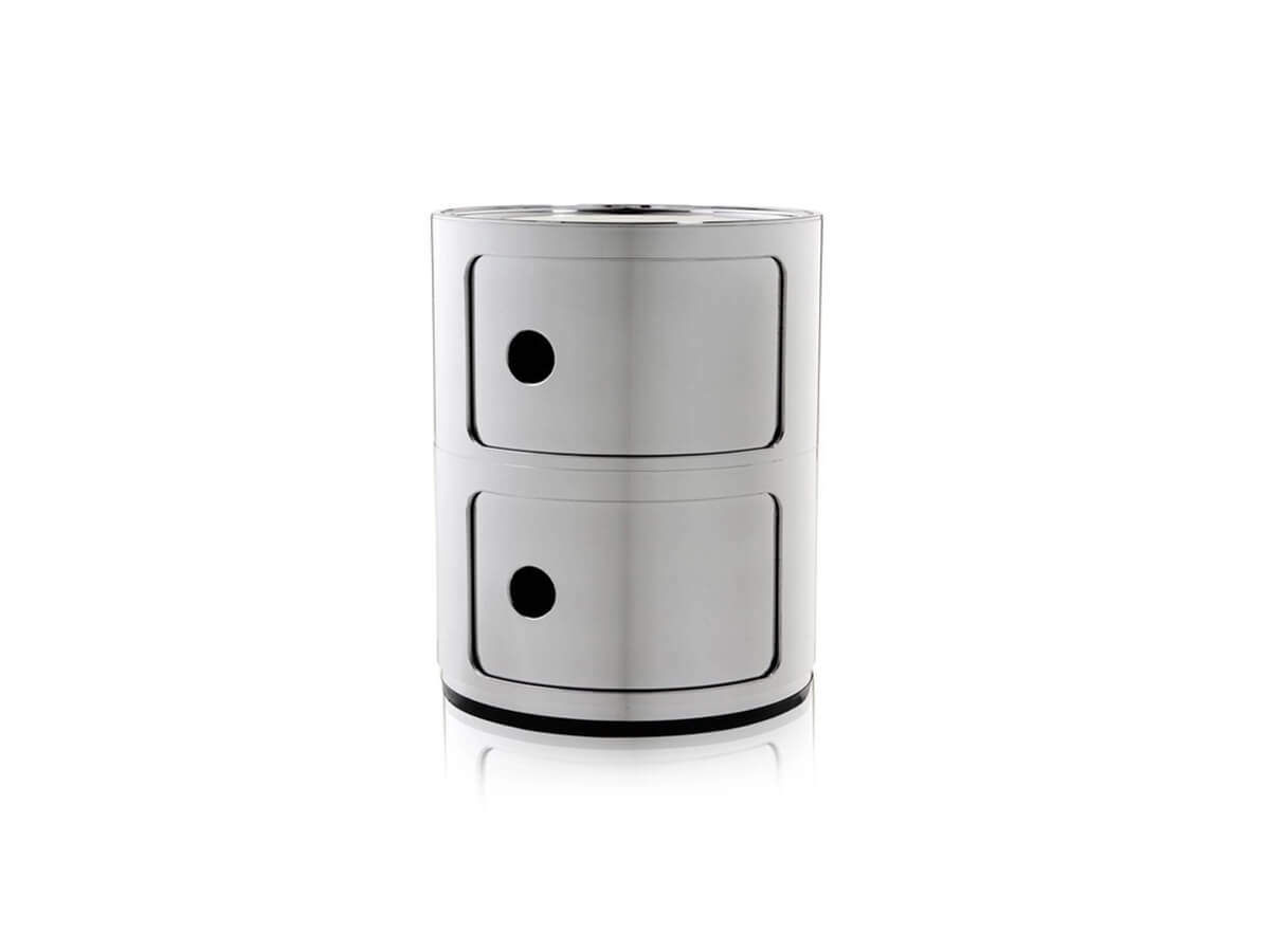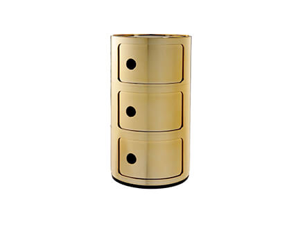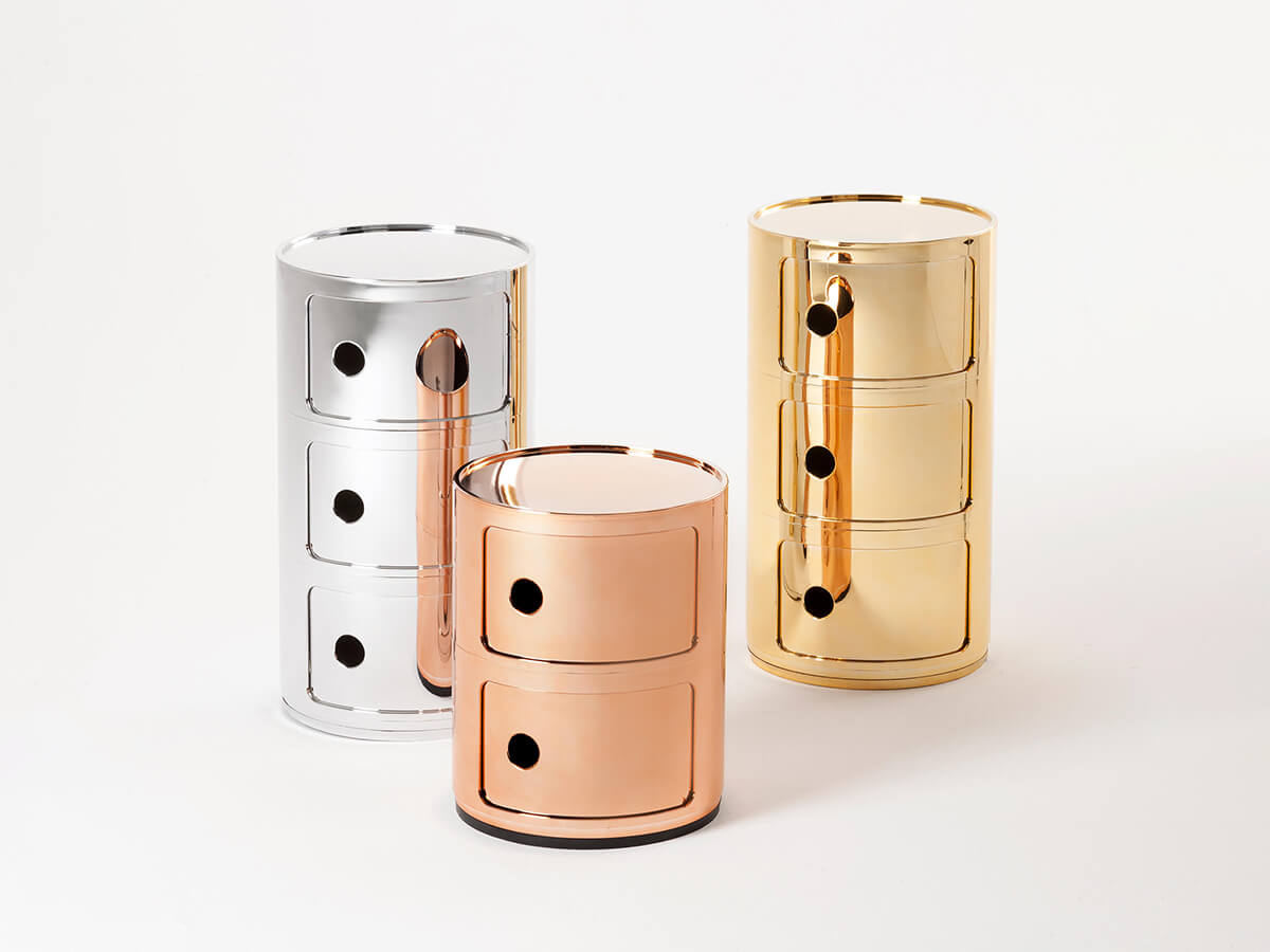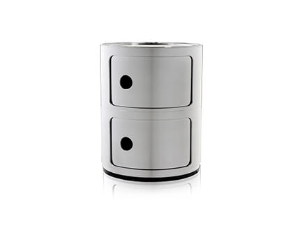 The extremely versatile Componibili by Kartell are one of the company's most iconic products and have survived over half a century of design unscathed while still maintaining their freshness intact. Designed in 1969 by Anna Castelli Ferrieri, they consist of a plastic cylinder closed by one or more semicircular doors that can also be opened with a single finger, now available in fixed versions with two, three or four overlapping elements. Practical and economical, they can be used in any environment: in the bedroom, the low version is perfect for taking on the functions of a bedside table, while in the children's bedroom, Componibili becomes a stylistically impeccable cabinet to store toys. In the kitchen, in the bathroom, in the office: Componibili is the ideal piece of furniture for tidying up the house and storing objects of all kinds.