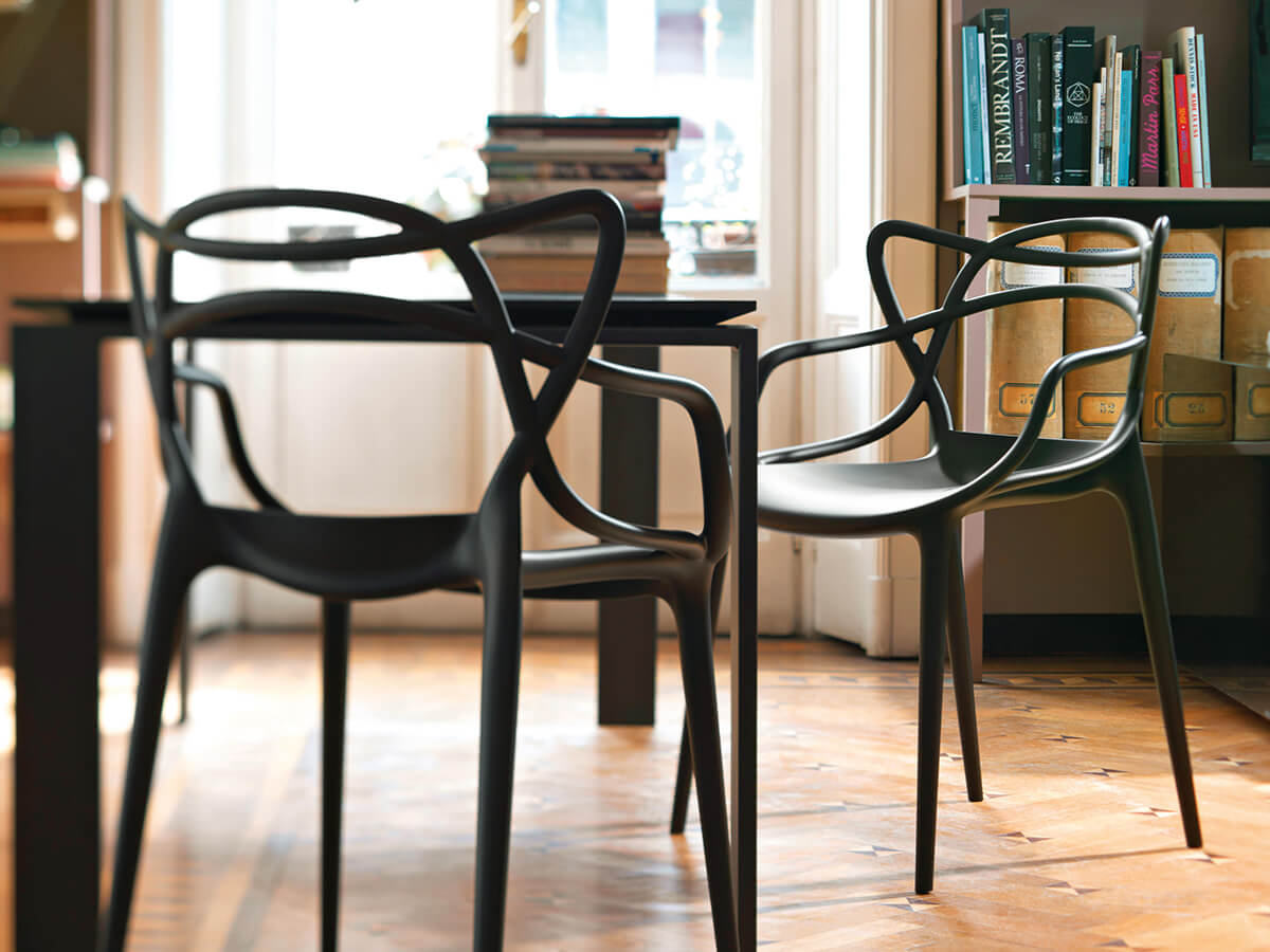 A classic of our time, a real piece of history that has been able to enrich the panorama of contemporary design since its inception. The Master chair is an acute homage to three symbolic chairs, taken up and reinterpreted by the creative genius of Philippe Starck. Let's talk about the “Tulip armchair”, the “Eiffel Chair” and the “Serie7”, sacred monsters who have been able to create an example of style. Master reinterprets these great icons by creating a sinuous, captivating and at the same time extremely light silhouette so as to facilitate their use. A perfect seat for both contract and home use. It also lends itself very well to outdoor furniture thanks to the strength of the material that composes it, modified polypropylene.