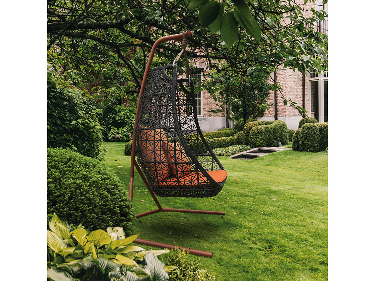 *Price valid for the version Egg Swing with base in aluminium – frame in Chestnut colour fyber – seat cushion, n.01 back cushion 45x45 cm and n.01 back cushion 65x65 cm upholstered in fabric cat. A (cod. 65800075 + 65810000 + 65853009 + 2 x 57999009).