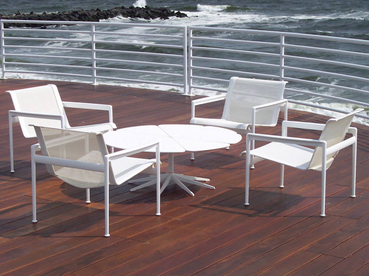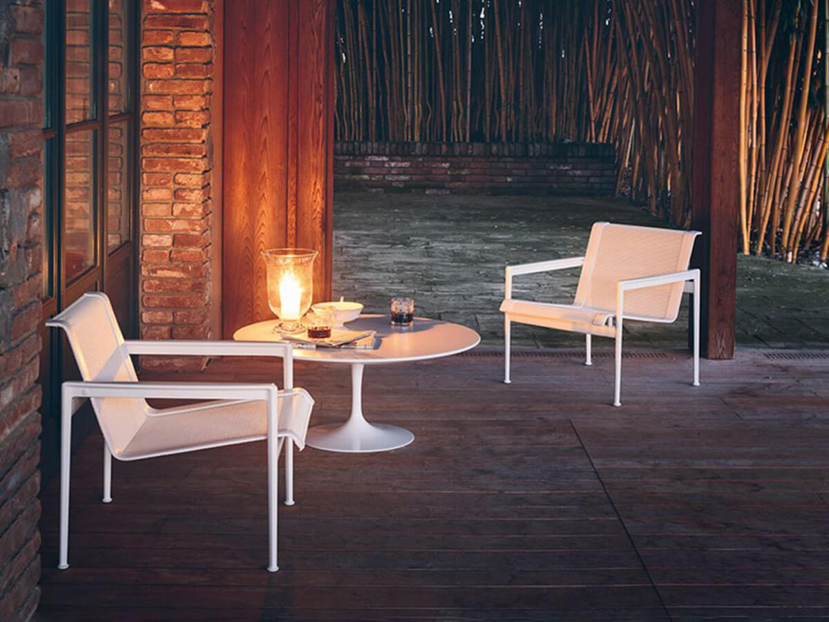 The 1966 armchair is an example of elegant and sophisticated outdoor furniture, perfect to complete the Knoll catalog with its own shape made of incisive lines without imperfections. Designed in the 1960s by Richard Schultz designer on commission from Florence Knoll, it was designed to combine high resistivity with formal pleasantness. The idea was precisely to resist the corrosiveness of external atmospheric agents and in particular the salty air of Florida. The result was an object with a contemporary design that does not disdain any outdoor space, from the terrace to the garden and more. The aluminum structure with paint finishes, embellished with a woven polyester fiber mesh ensures maximum durability over time.