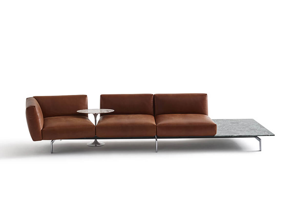 Piero Lissoni designs the modular system Avio with a special consideration for the functional aesthetics, the comfort and the possibility to recreate to your taste where you can relax and experience conviviality. In an almost infinite variety of combinations, the designer studies some elements and side tables capable of perfectly integrating thanks to specific hooks on central steel bars. Cushions and seats are also customizable, made of variable density rubber lined to give greater comfort. Available in numerous variants of fabric or leather, Avio is an excellent piece of furniture for modern environments capable of intertwining taste and style into one of great effect.