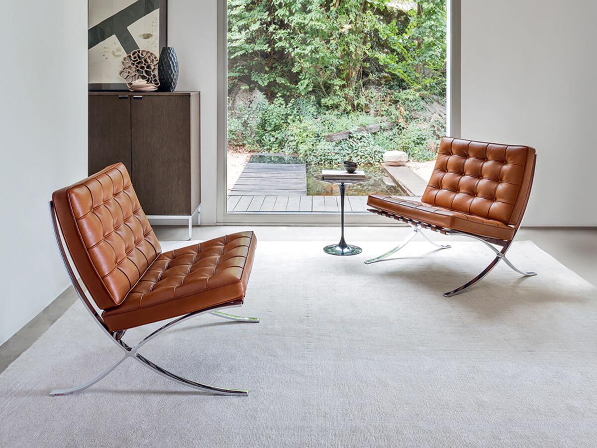Even today, the Barcelona armchair represents one of the most iconic and recognized products of the Knoll company. Designed in 1929 by Ludwig Mies van der Rohe during the Universal Exhibition in Barcelona, it was presented to the public for the first time inside the German stand. On that occasion, Rohe wanted to recreate a space of extreme rhythmic taste using industrial material re-evaluated to the rank of design tools. For this particular project, the artist was inspired by ancient Rome, outlining a seat where forty quilted squares of the cushion and backrest are placed on a glossy chromed steel structure. Essential and minimalist, Barcelona began to be produced by Knoll in 1953 when Mies granted the rights.