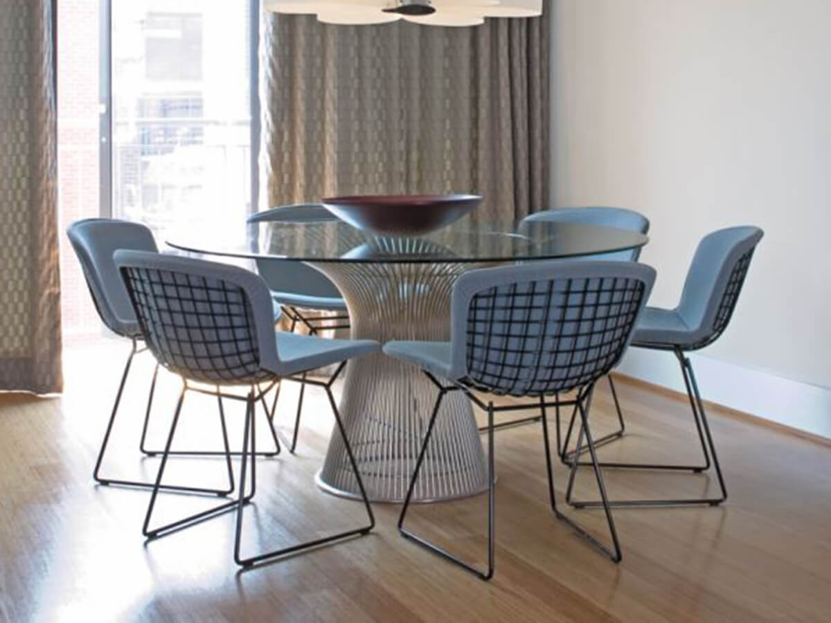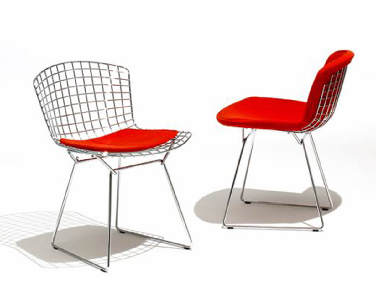 The Bertoia furniture collection includes various proposals including chairs and stools of extreme aesthetic beauty. At the time of its conception, the Bertoia chair was considered extremely modern and futuristic, since steel, a material generally associated with the industrial world, was used for its structure. Nonetheless, Bertoia immediately became a design classic, spreading throughout the world as a full-fledged piece of furniture, perfect for living rooms and kitchens. The Bertoia Side Chair has an integrated cushion to which is added a well-assorted range of variants for the supporting structure.