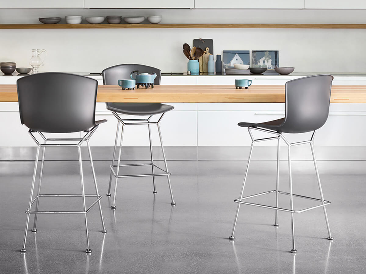 The Bertoia collection is configured as an expression of beauty and functionality combined with a design so subtle that it appears almost unreal. In an unfolding of steel weaves, the Bertoia stool hides within itself a great strength and resistance that over the years have also become the reason for its spread all over the world. The welded rod structure with a glossy or satin chrome finish coordinates perfectly with various types of environments, enhancing flawless elegance with the few perfectly modeled lines. To facilitate sitting, Harry Bertoia adds a cushion to this model, available in different finishes of fabric and leather according to taste.