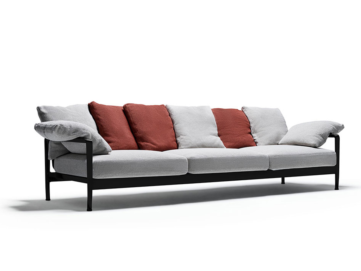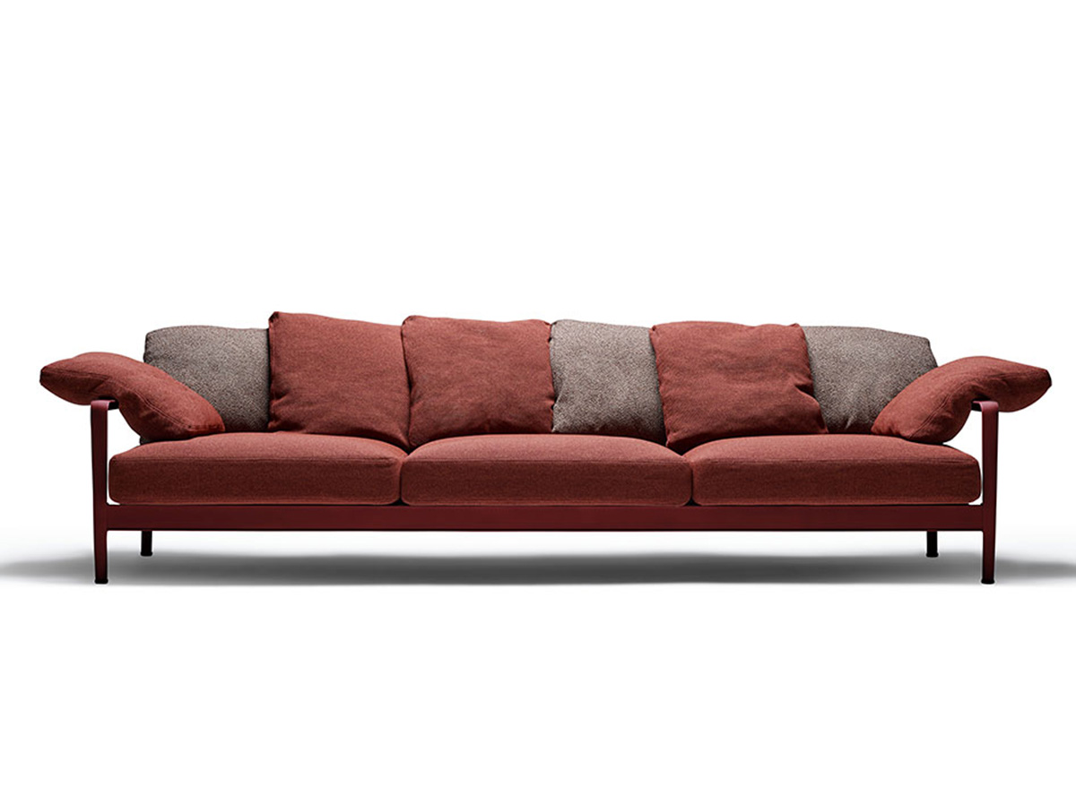 Knoll intertwines its unmistakable style with the stylistic touch of Piero Lissoni, creating a sofa with a sober and modern taste at the same time, where the search for function and simplicity is strongly perceived. Lissoni's outdoor collection was born precisely from the idea of reducing each element to a few essential lines, represented here precisely by an aluminum structure available in different colors including white, black and red. The backrest is in high-intensity molded rigid polyurethane, with cushions also in flexible polyurethane of different densities. In its different sizes, the Lissoni sofa represents an extremely simple but refined proposal, ideal for those who love to furnish with taste.