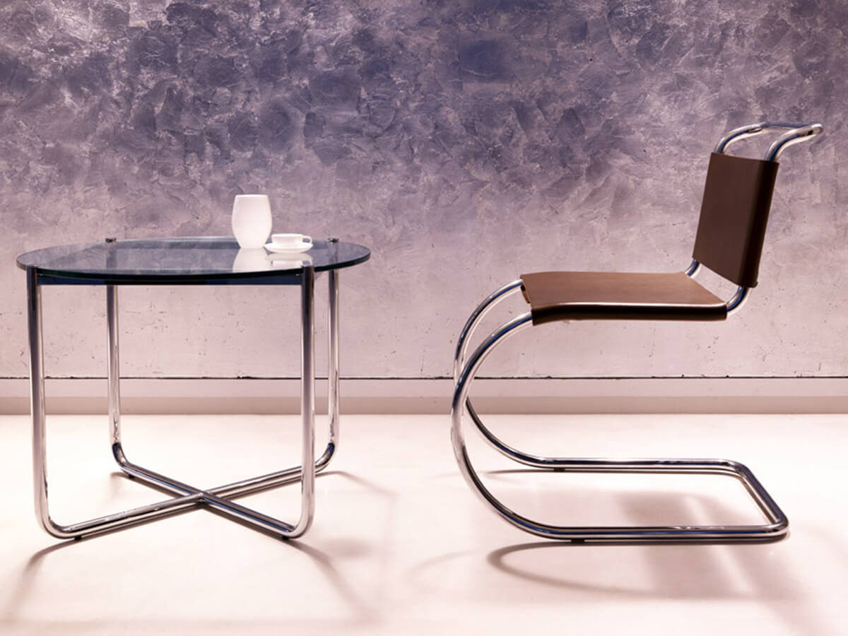 The aesthetic strength of steel is reflected in this umpteenth work by Mies van Der Rohe where steel, a material par excellence linked to the industrial era, becomes the absolute protagonist while approaching the sensual lightness of crystal. Mr Table was born from tubular steel and immediately became a classic of its kind due to the essentialism of its shapes combined with the enormous visual potential. Mr Table is perfect for the living area of the house, where it can be combined with numerous other works, but still finds its place in other more formal rooms of the house such as a study or anterooms. Unaltered over time, it combines perfectly with other works by the author in a whole with a great modern impact.
