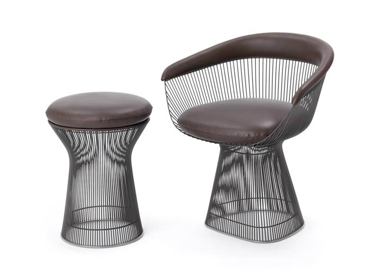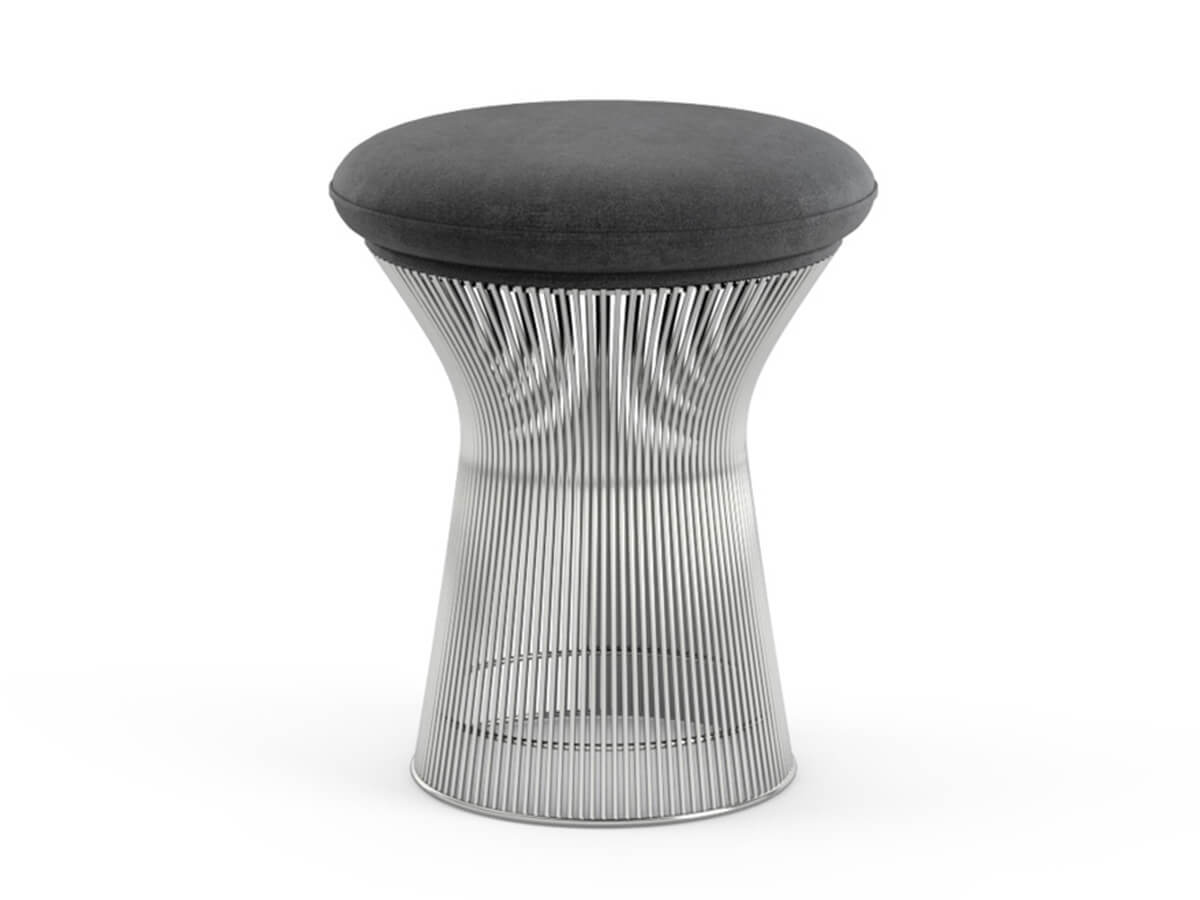 A collection that includes different seats and upholstery, a conformation of extreme elegance and aesthetic beauty. The Platner stool completes Warren Platner's work in creating home furnishings with vertically and horizontally shaped metal rods, treated with nickel plating and then coated with transparent varnish. Thanks to its simple and linear cut enriched by a variable density foam pad, Platner guarantees unparalleled comfort, offering the living area an element that can be perfectly integrated with any style. Since 1966, the year it was put into production, it remains one of the many Knoll products destined to last over time.