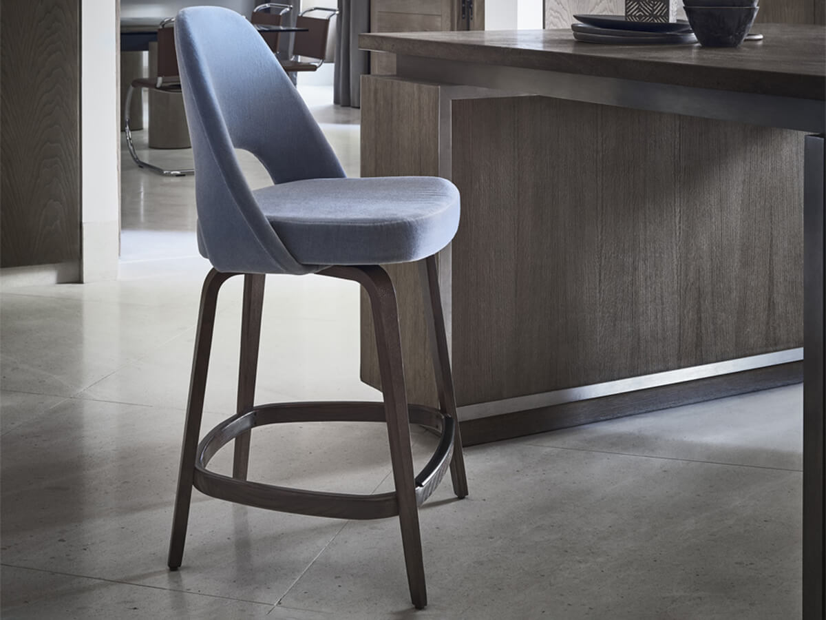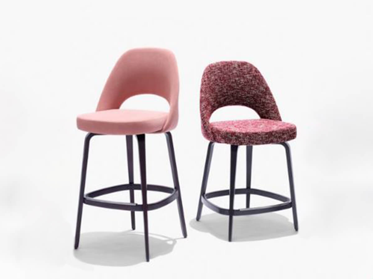 A product of extreme taste, capable of combining the simplicity of forms with the imaginative capacity of Eero Saarinen. The designer designs this piece of furniture for the living area and the dining space, combining the comfort of a padded and enveloping seat with the solidity of a base consisting of four legs in wood finish. The shaped shell in reinforced polyurethane guarantees maximum resistance and durability over time. The footrest ring of the stool strengthens the stability of the structure and acts as a support at the same time. The entire model can be customized both for finishes and for the choice of colors for the fabric or leather upholstery.