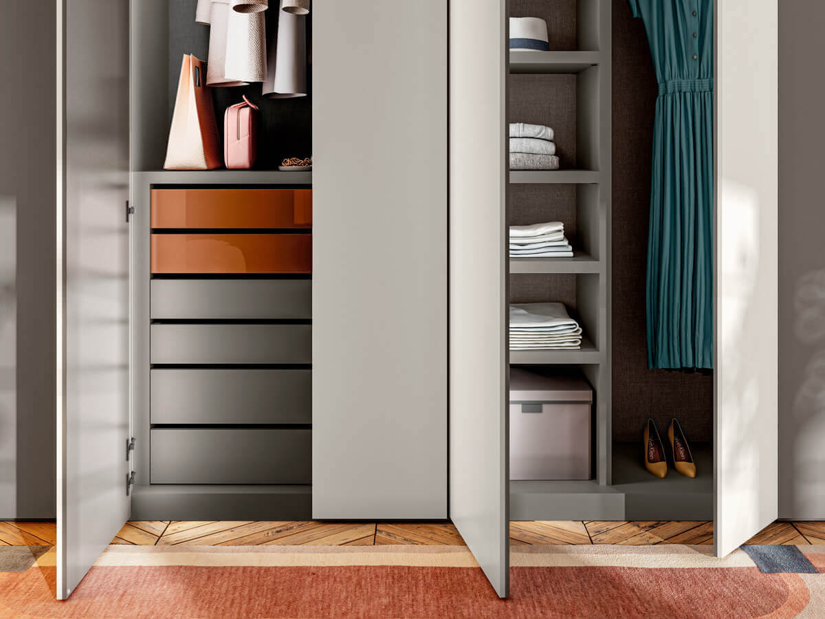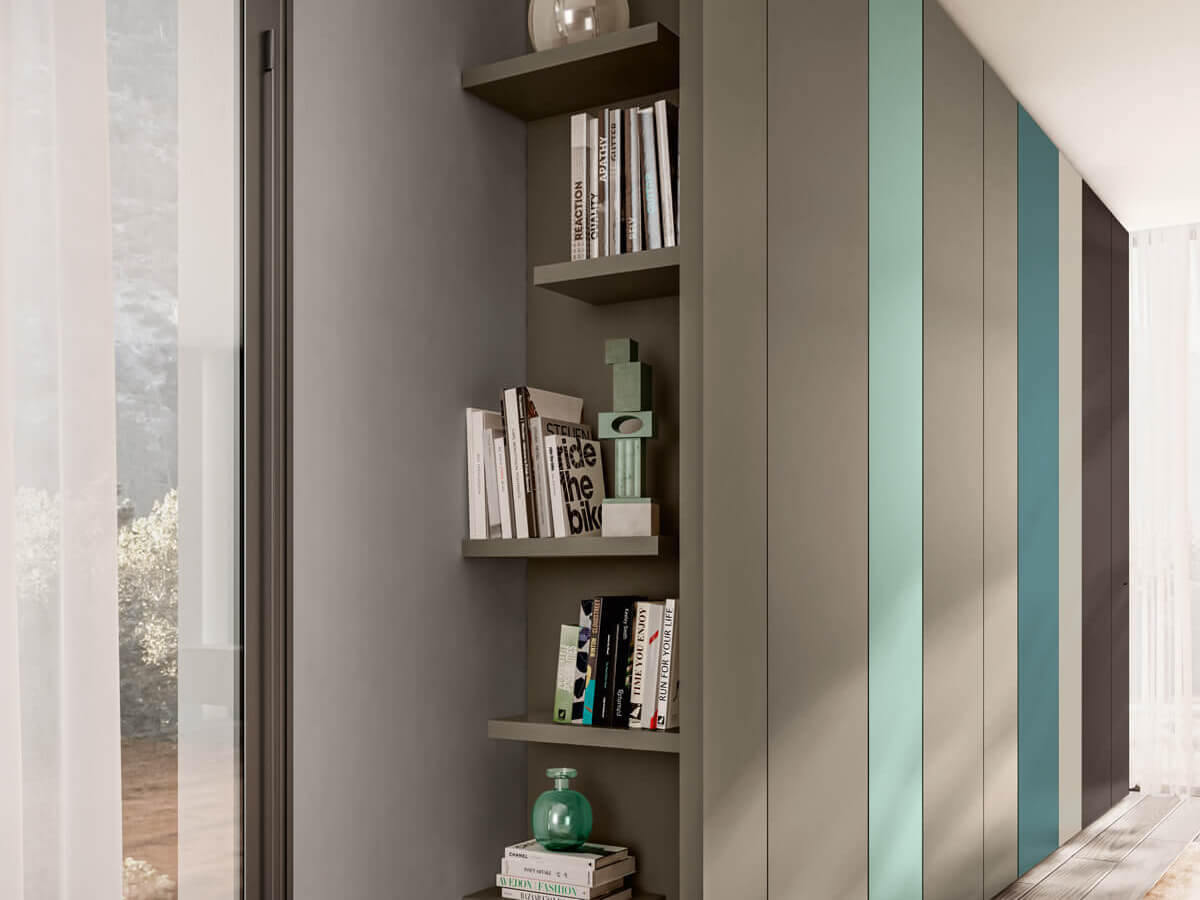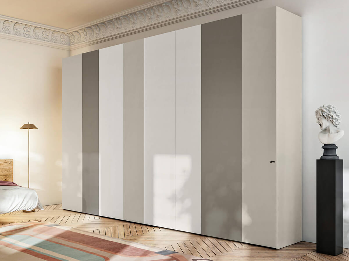 The Smart model perfectly embodies the philosophy of Lago wardrobes: not simple containers, but architectural elements in the round, protagonists of ingenious and versatile solutions. Smart can be presented in creative suspended compositions, can also see its external sides equipped with shelves and hangers that add functionality and design possibilities, can provide lacquered doors in different colors with a creative juxtaposition of different shades or can use the patterns of exclusive printed melamine of Lago production: in short, it is an inexhaustible creative abacus in the hands of the designer to give life to ingenious and always different solutions. The hinged doors use a push-pull opening system, excluding the presence of handles and safeguarding the purity of the volumes.